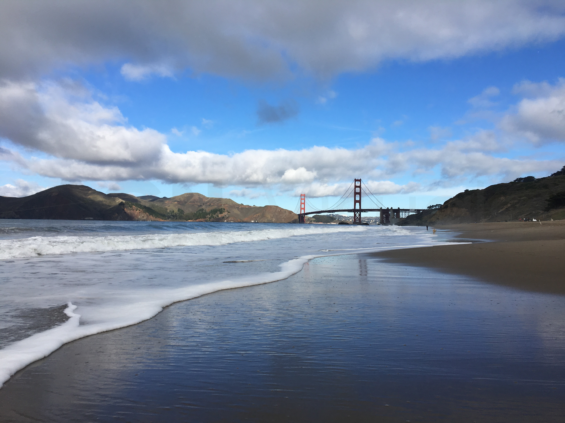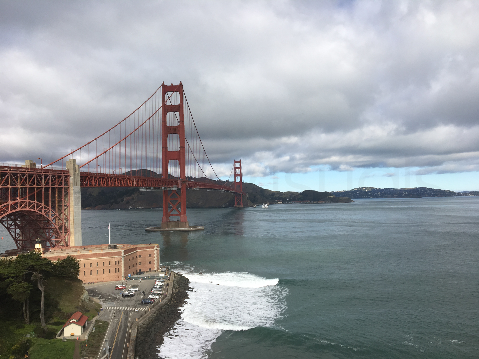 Llegamos y lo primero que hacemos es ir a ver el Puente Golden Gate desde diferentes miradores. Primero vamos al mirador de Fort Point National Historic Site; cruzamos el puente y vamos al mirador a pie de carretera; y volvemos a cruzar el puente y vamos al mirador de Baker Beach. Fue impresionante para nosotros ver ese paisaje que tanto habíamos visto en las películas, sobre todo en las de catástrofes naturales.