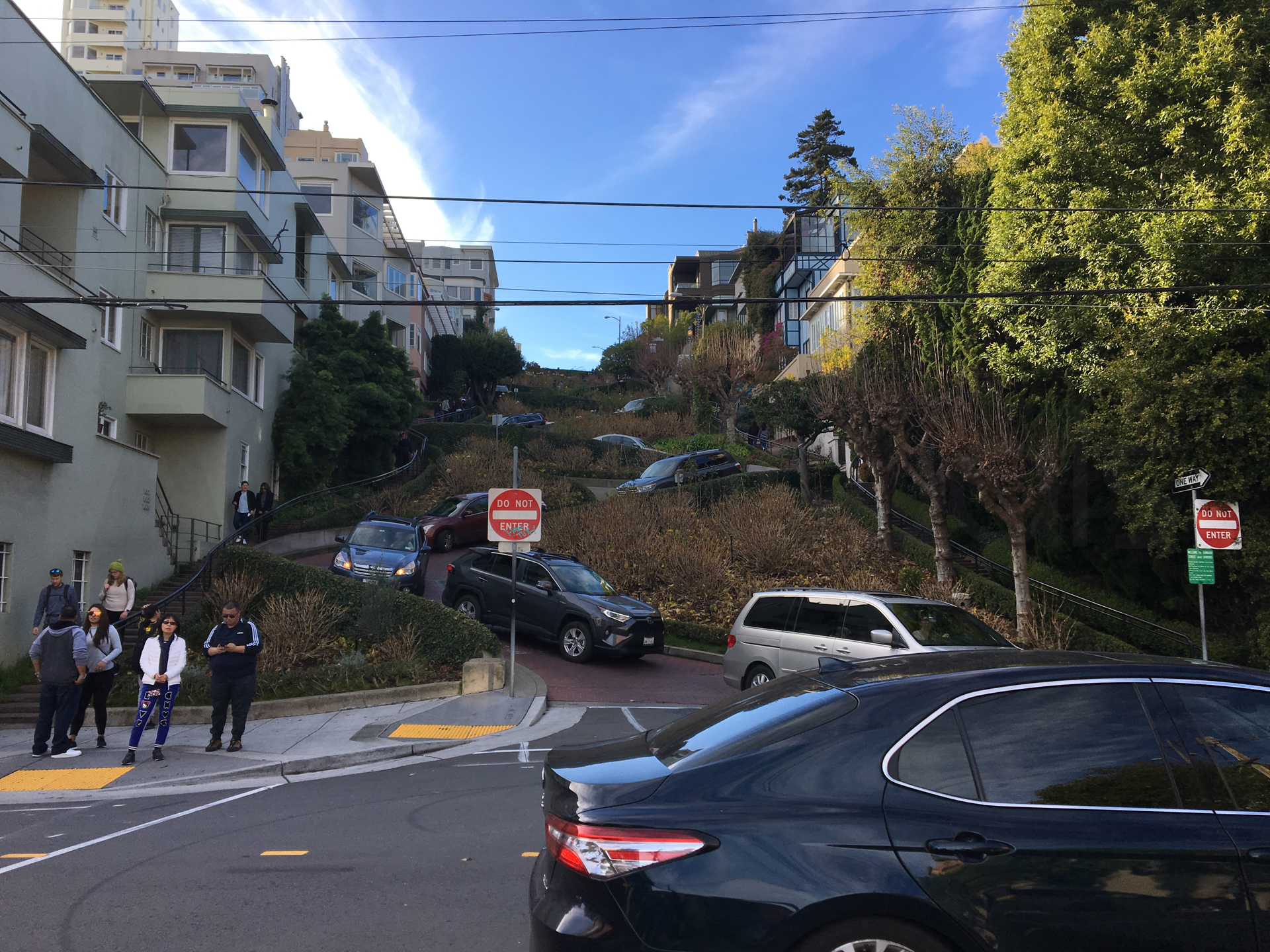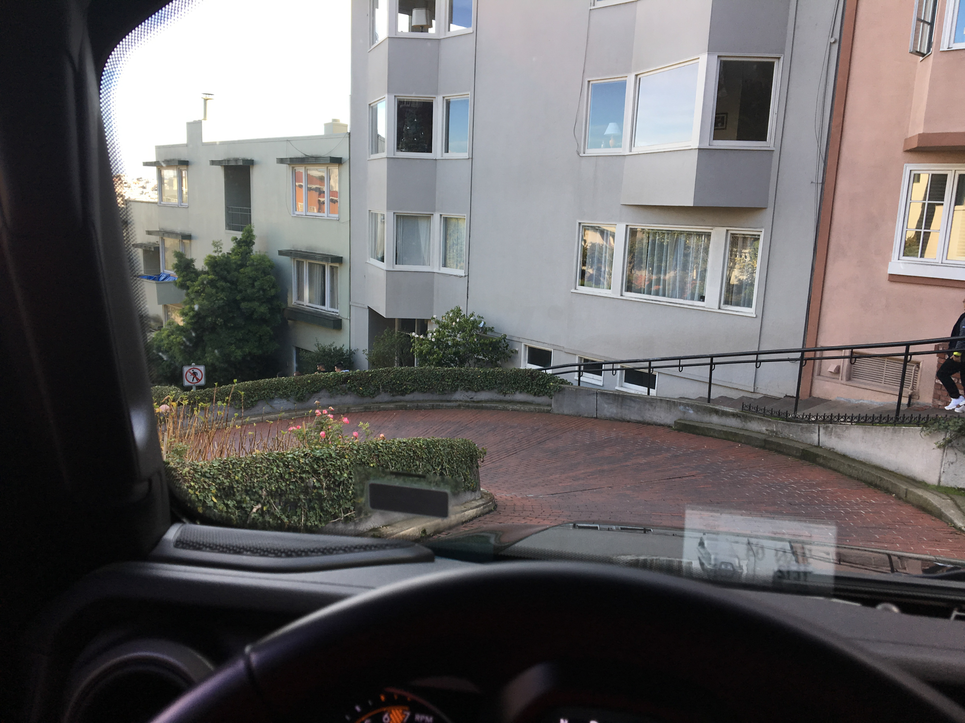 Ya bajando hacia el apartamento, nos vamos encontrando más secuoyas en medio de la carretera. La carretera de bajada tiene muchas curvas estrechas y veo que los conductores de aquí van muy lentos. Pronto me doy cuenta de que en los Estados Unidos son rápidos en línea recta pero lentos en las curvas…