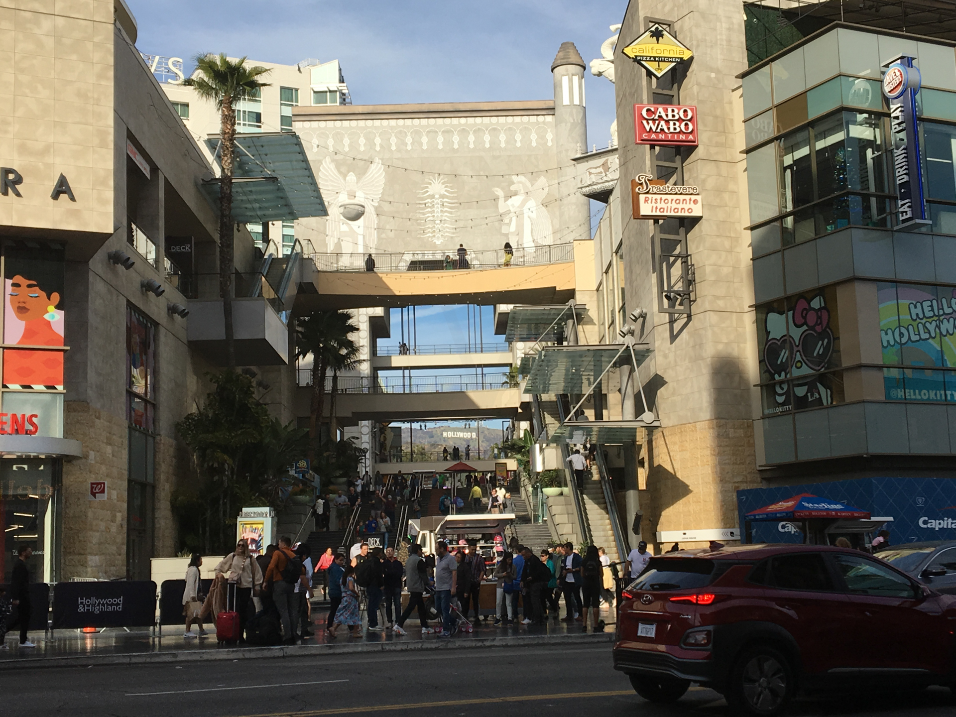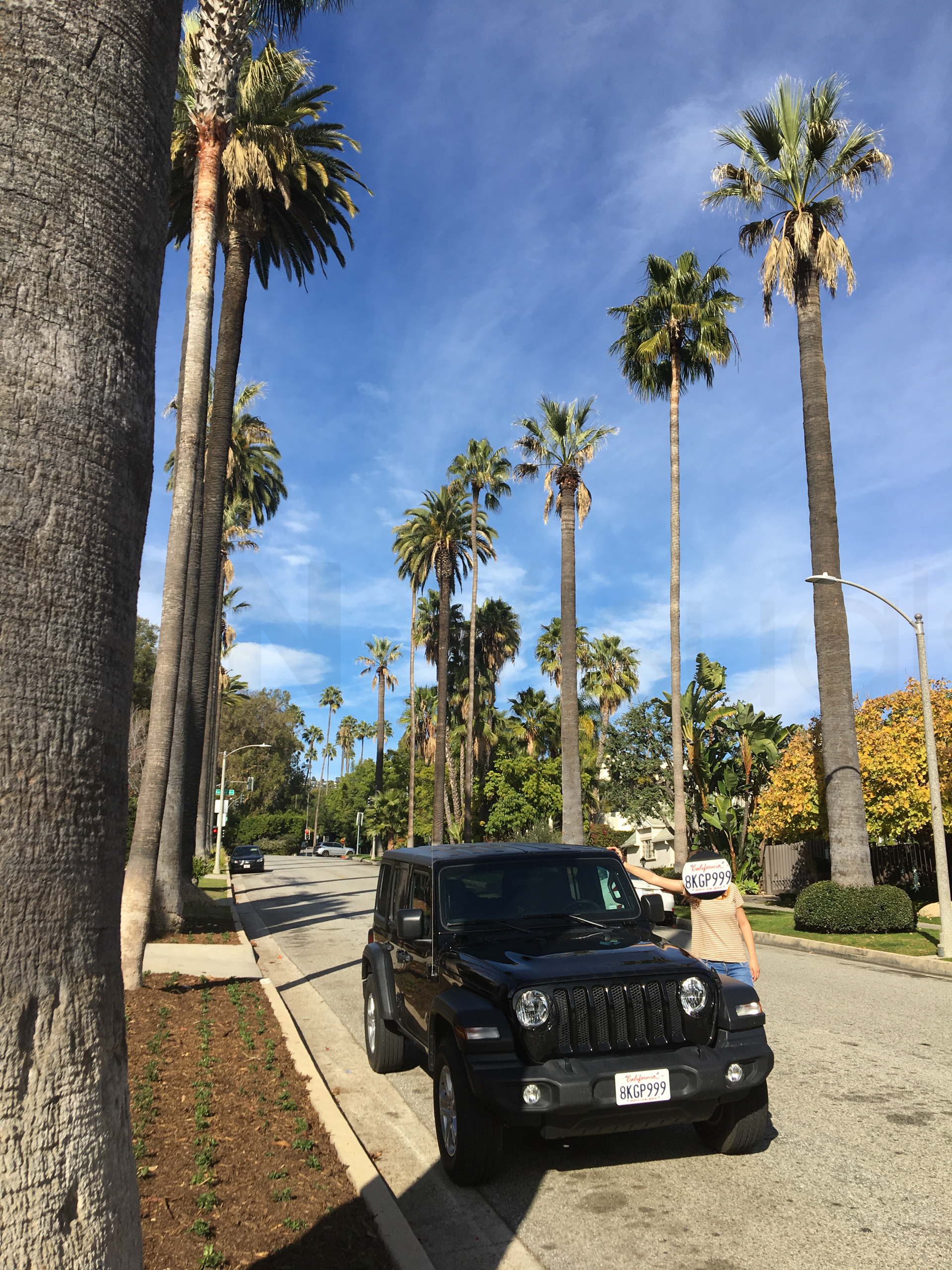 Dejamos el apartamento y nos vamos hacia Los Ángeles. De camino, queremos ver las famosas letras de Hollywood, pero es domingo y el acceso al mirador está colapsado. Decidimos bajar la carretera a una zona desde la cual se pueda ver el cartel y listo. Vamos a la urbanización de Beachwood Canyon y después iremos a ver la zona de Beverly Hills.