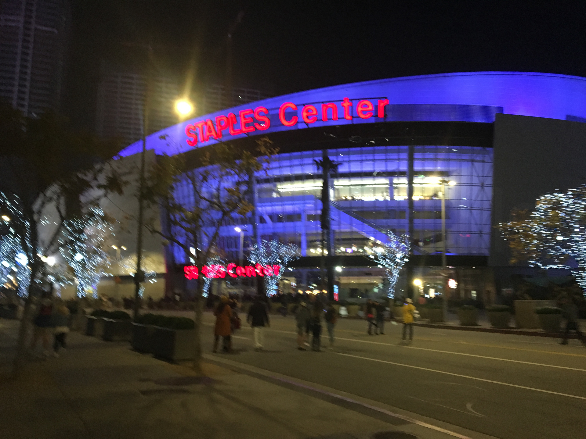 Descansamos porque hoy toca noche de partido de los Lakers. Partido de Los Ángeles Lakers contra los Detroit Pistons. Tenemos las entradas y la reserva en el parking. Vamos al Staples Center, aparcamos y entramos al estadio. Solo el estadio es espectacular. Todo grande, muy americano, claro. Vamos a nuestras butacas, nos reímos pensando que no veríamos nada, estamos muy altos. A mí no me gusta mucho el baloncesto y pienso que saldré de vez en cuando a darme una vuelta.