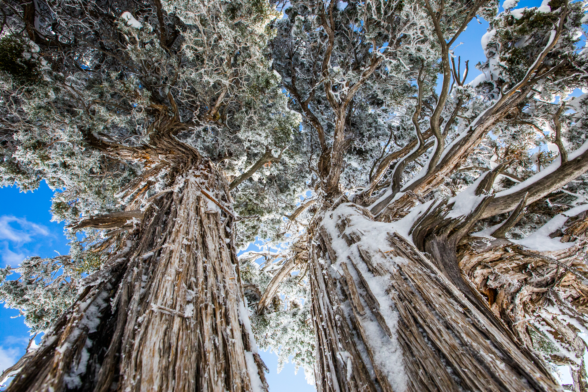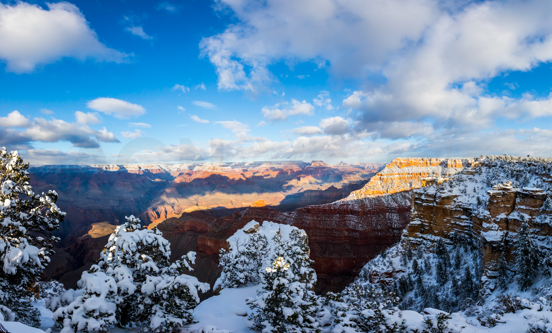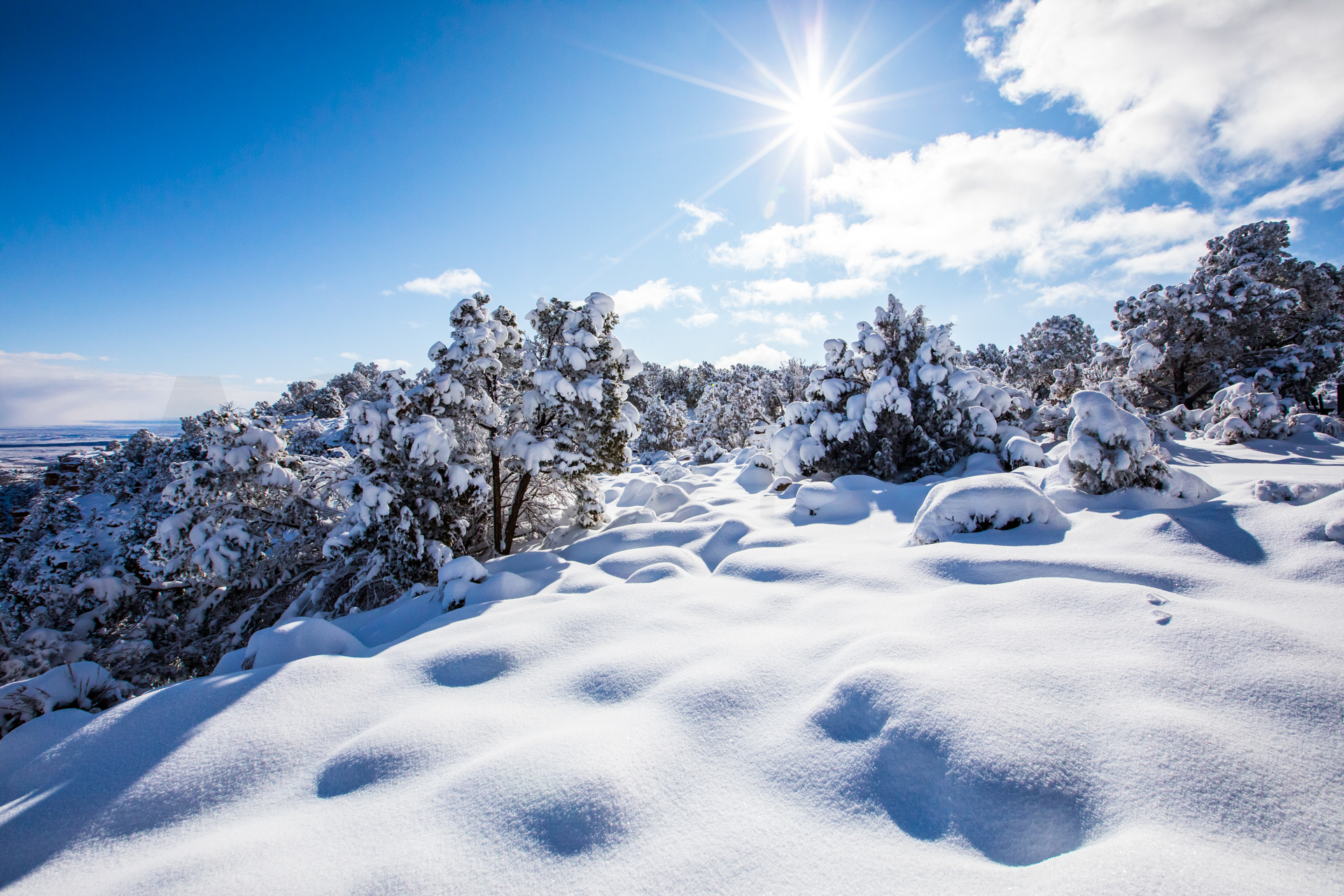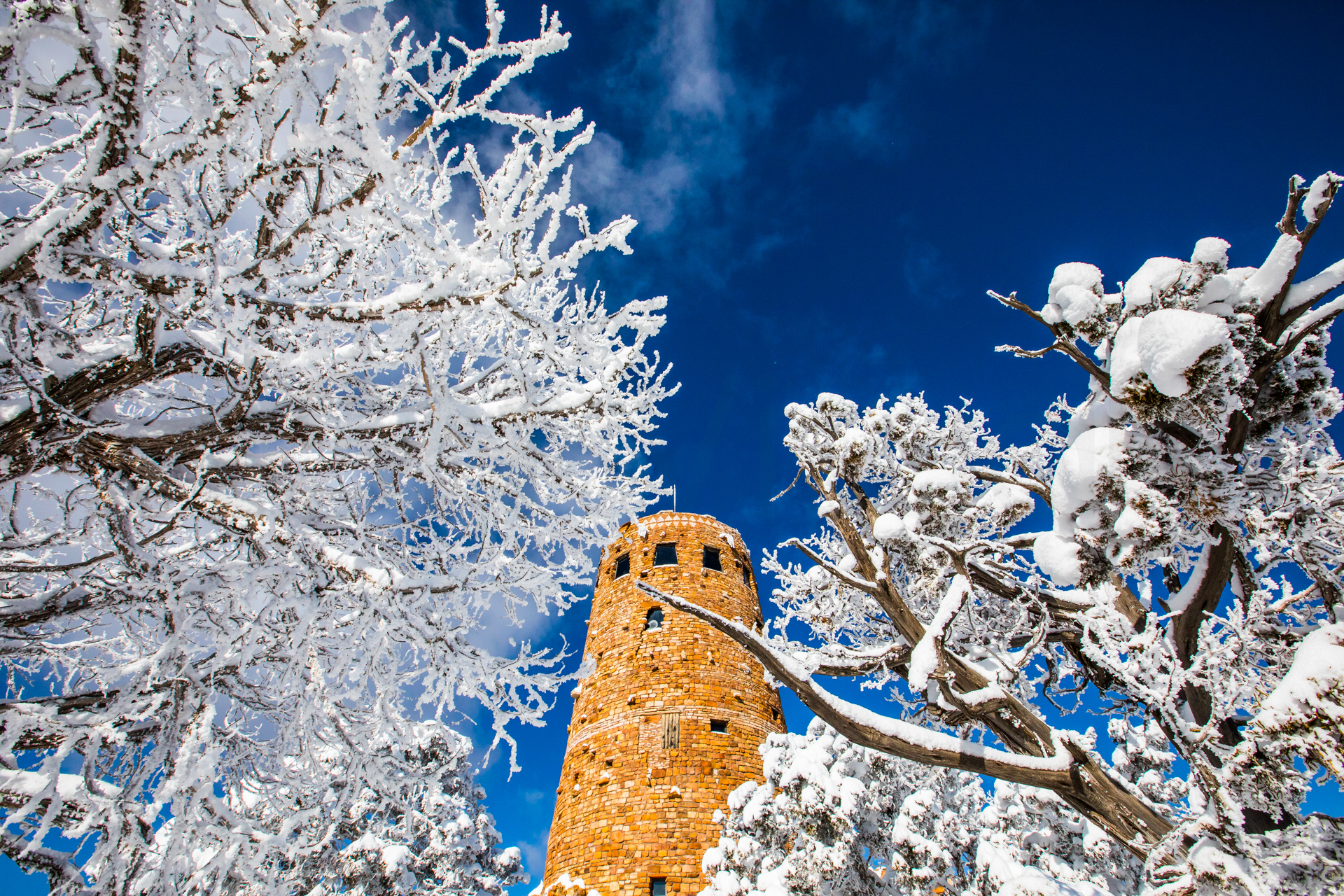 Continuamos y nos dirigimos hacia el Grand Canyon, iremos al mirador este del Parque Nacional del Grand Canyon del Colorado (Desert View Road) con intención de seguir por la carretera de los miradores hasta la zona central. Cuando llegamos, la carretera está cerrada y aparcamos en el parking. El parking es una pista de hielo y hay más de un palmo de nieve virgen de esta misma noche en el paisaje. Sabemos que ese día es genial, paisaje recién nevado y soleado. Nos calzamos bien, nos abrigamos, cogemos la cámara y hacia los miradores a pie. Llegamos al primer mirador y nos volvemos a quedar con la boca abierta. ¡Qué inmensidad de paisajes! ¡Y todo recién nevado! El contraste de la roca del desierto y la nieve dejaban un paisaje espectacular. Vamos andando y disfrutando por estos miradores y no podíamos parar de hacer fotos. ¡Qué momentos increíbles vivimos esa mañana!