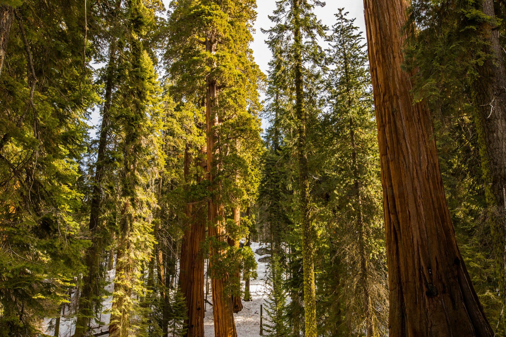 Amanece otro día similar al anterior, día claro con algunas nubes altas. No tendremos problemas para ir a visitar el Parque Nacional de las Secuoyas. Después de muchas curvas, por fin llegamos. ¡Qué árboles! ¡Qué bosques! Siempre me ha fascinado la naturaleza y, sobre todo, los bosques. Observo los árboles y me parece impresionante la vida que pueden dar a su alrededor. Las secuoyas son árboles gigantescos, altísimos. Además, tienen unas formas singulares y son resistentes a los incendios. Es una pena que la mayoría de estos árboles se talen y solo queden unos pocos en comparación con los que había. Me dejan sin palabras, no puedo dejar de hacer fotos y me encanta estar andando bajo ellos. Mi pareja también alucina con este espectáculo forestal.