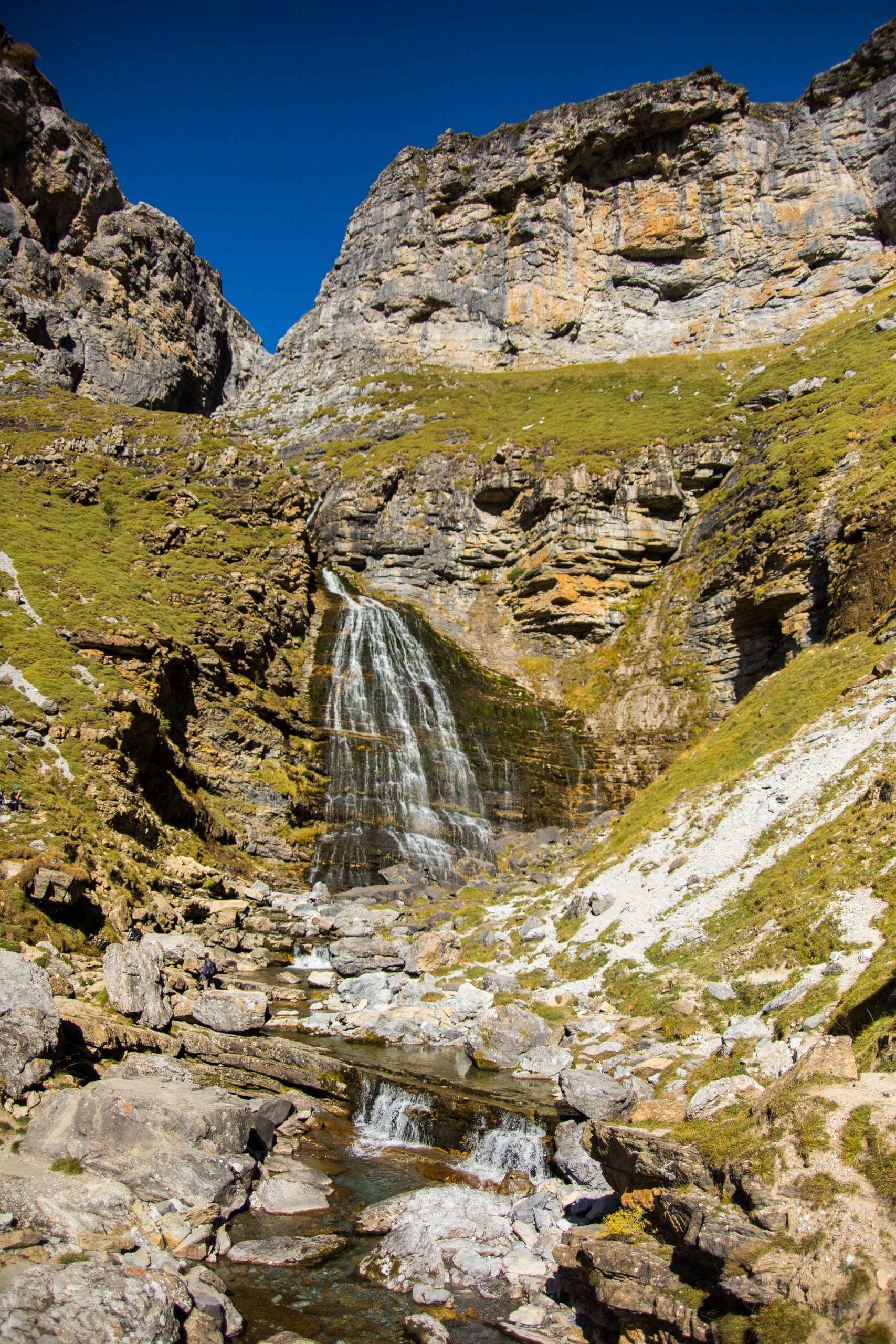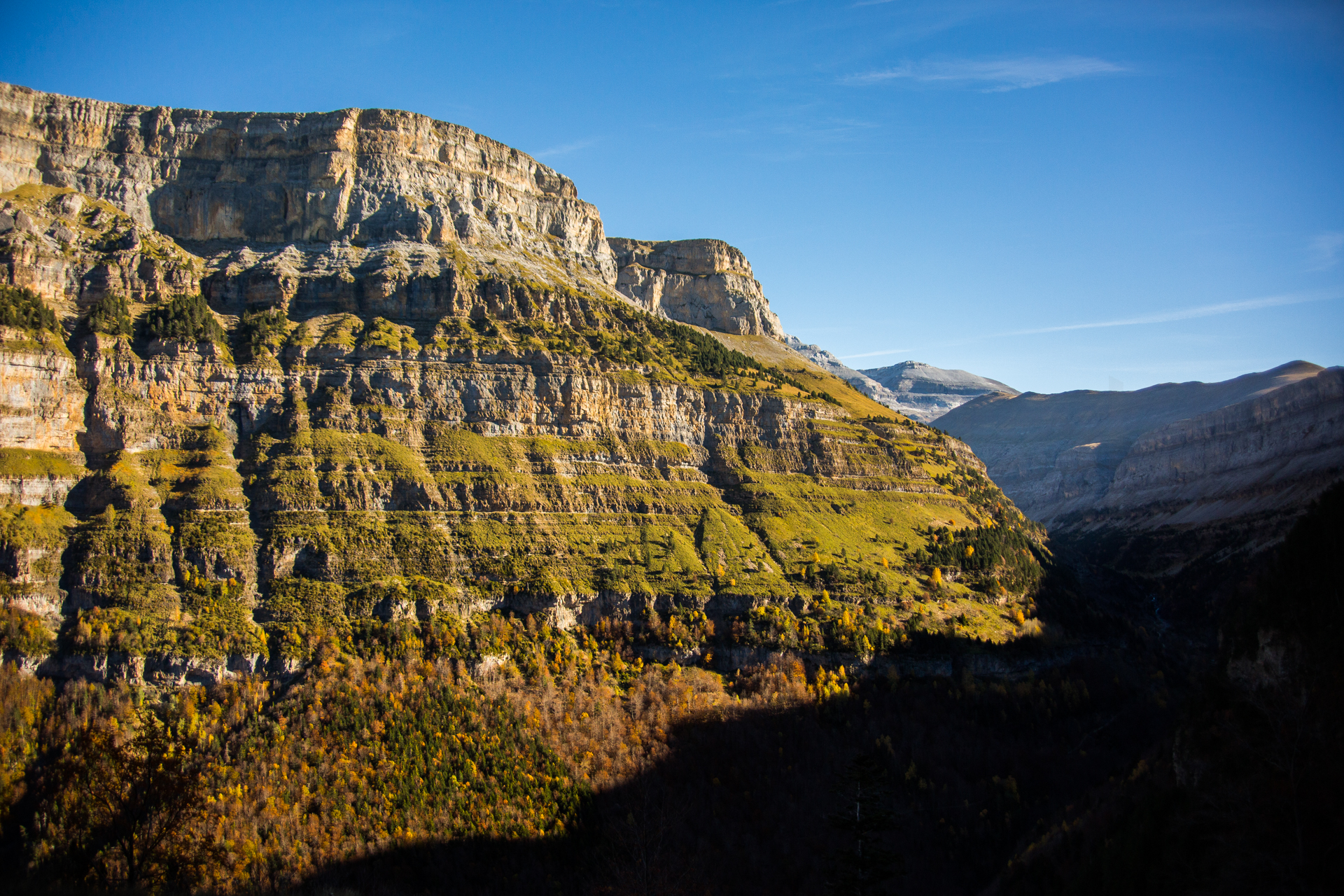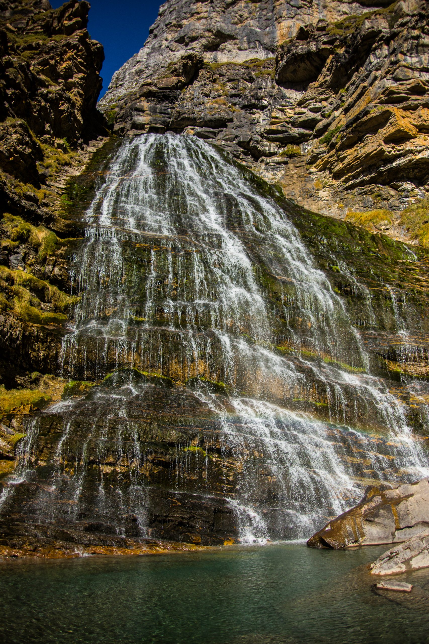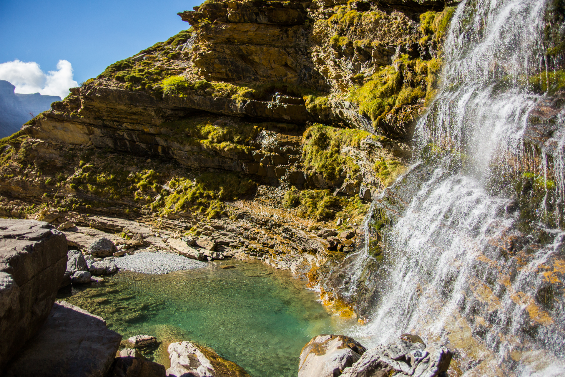 Me dirijo con mi coche hacia Ordesa para hacer un trekking que tenía pendiente desde hacía años. Subida al mirador de Calcilarruego, senda de los Cazadores, faja de Pelay, cascada de la Cola de Caballo y vuelta por las cascadas de la Cueva, del Estrecho, Gradas de Soaso… y vuelta al coche.