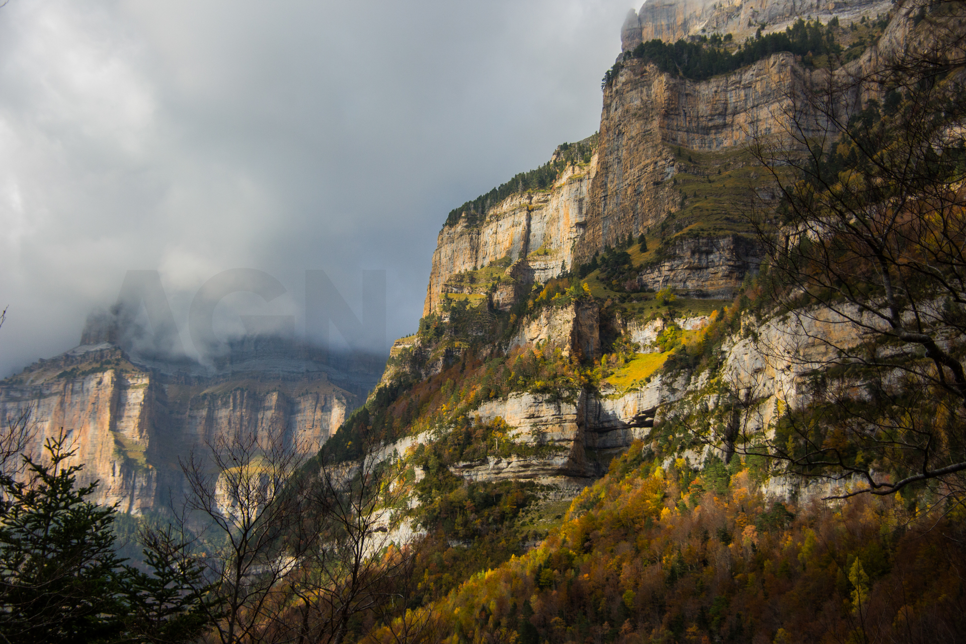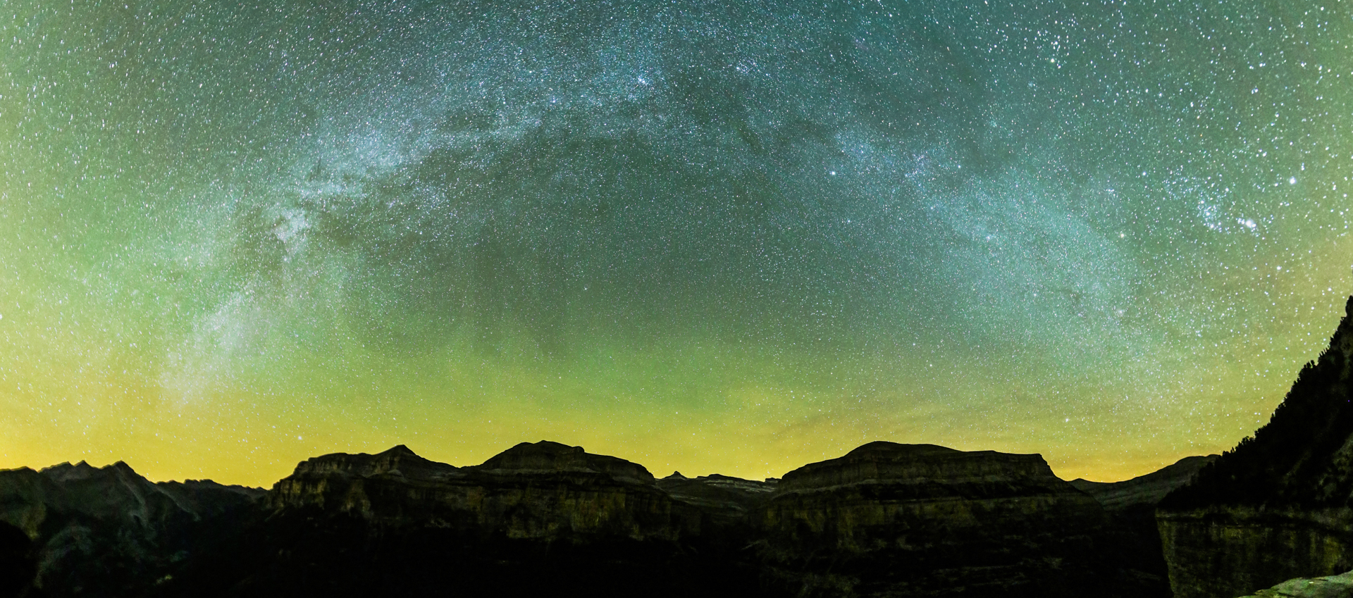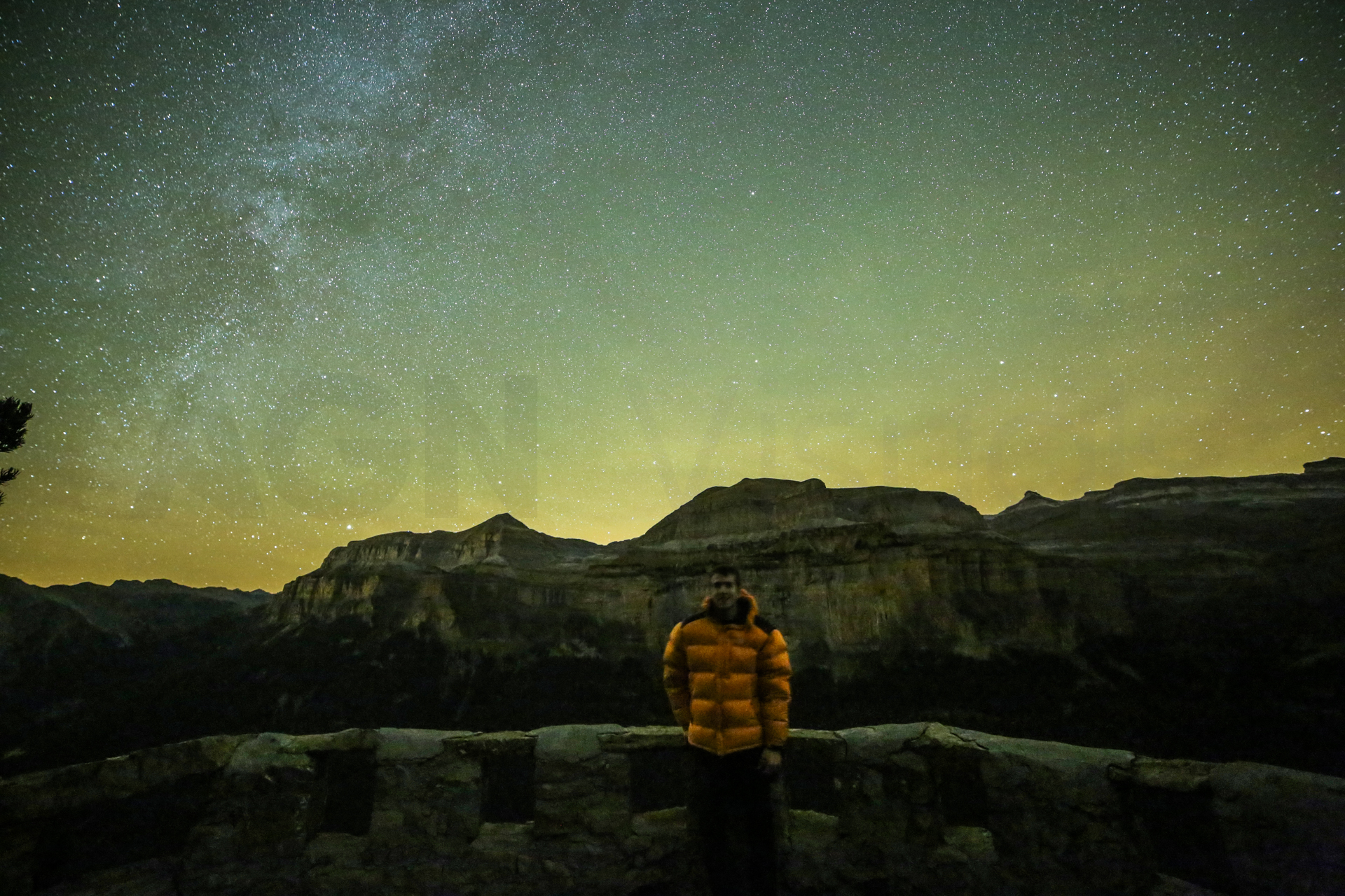 Llego al mirador de Calcilarruego y ¡qué vistas! Un mirador espectacular de todo el valle de Ordesa vestido de otoño, el Tozal de Mayo, el circo de Cotatuero y su cascada… Aquí pasaré la noche. No dormiré; estaré la noche haciendo fotos. ¡Y qué noche! Noche despejada que pude fotografiar la Vía Láctea encima del valle de Ordesa.