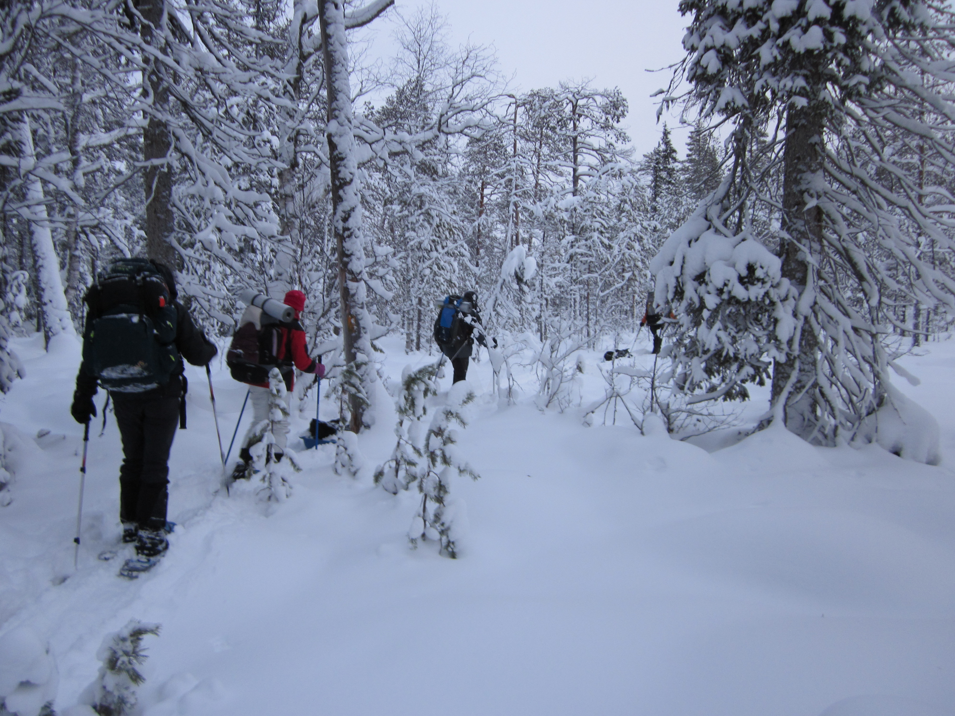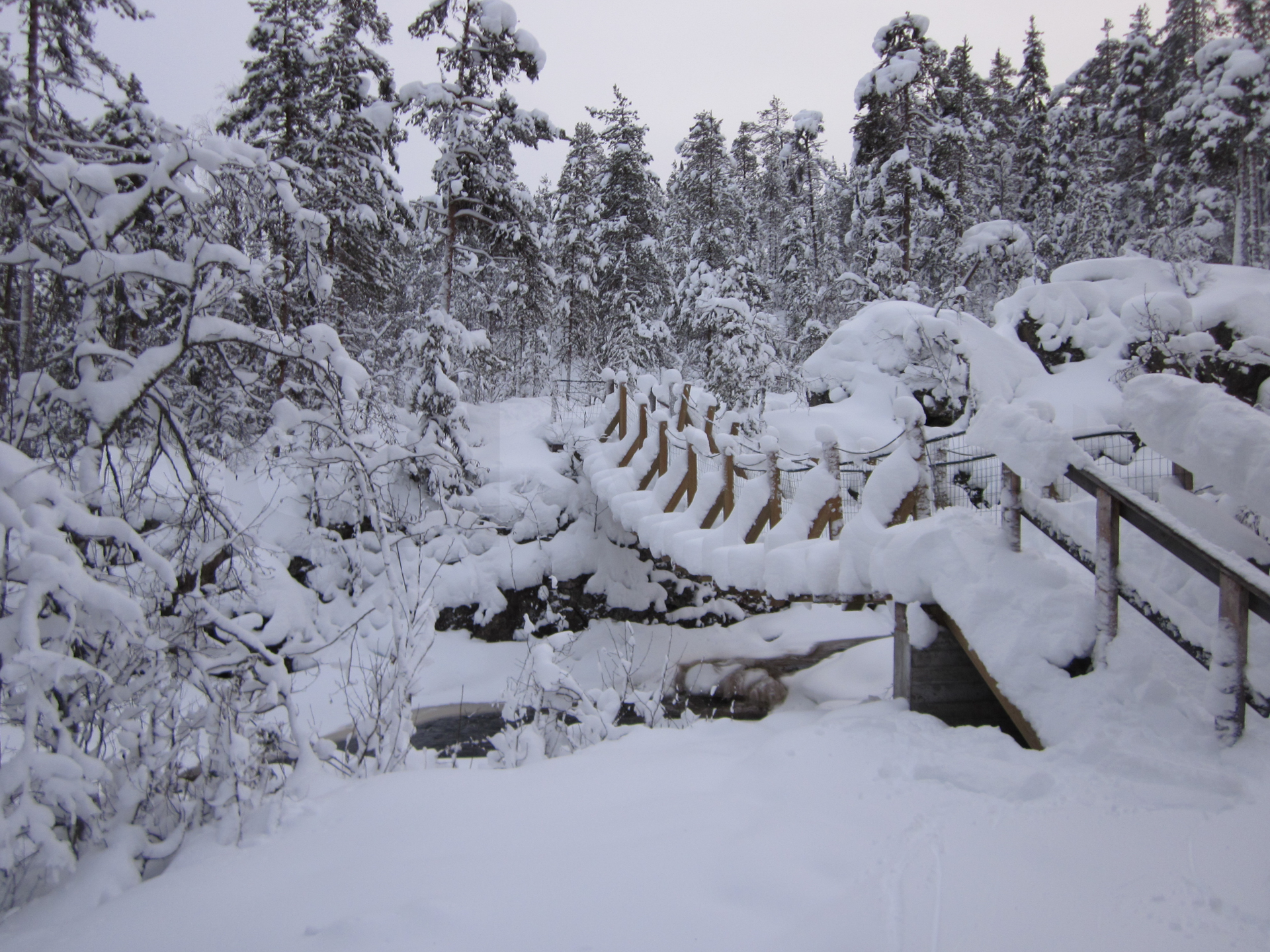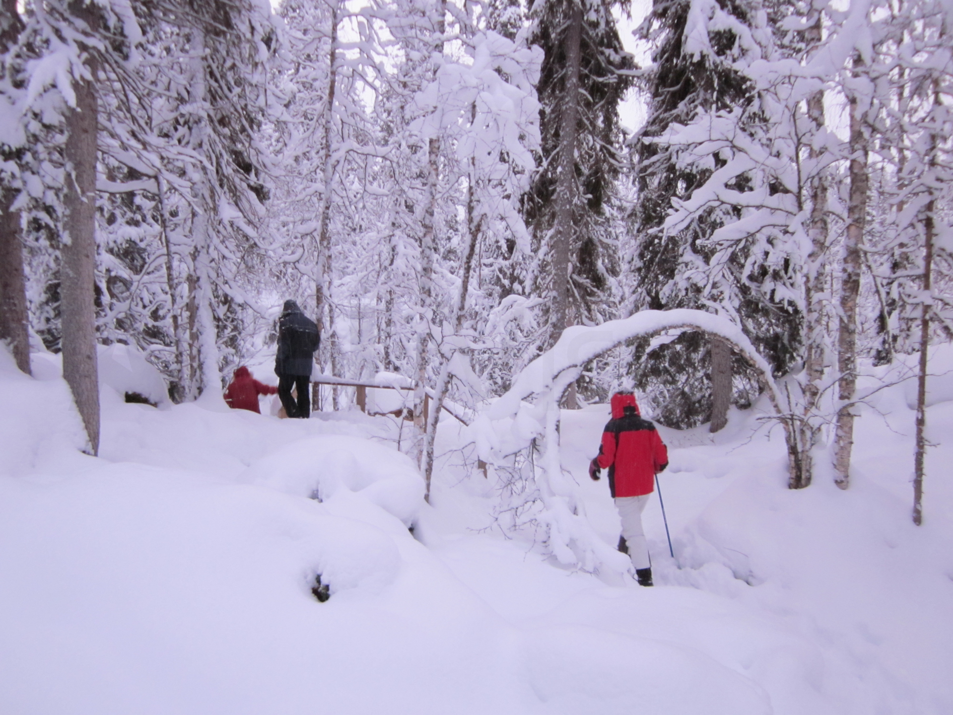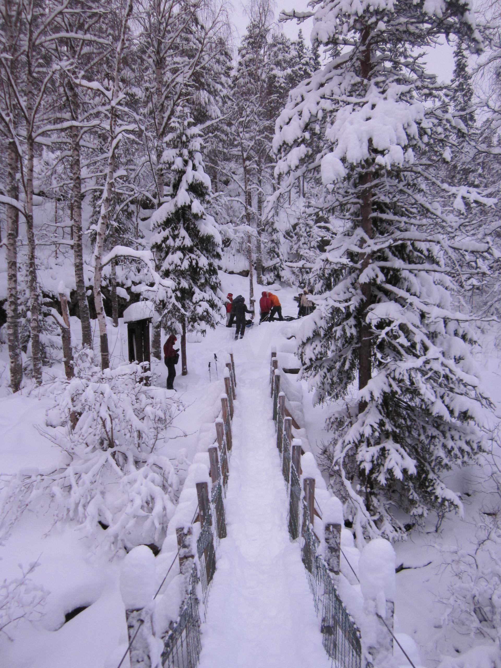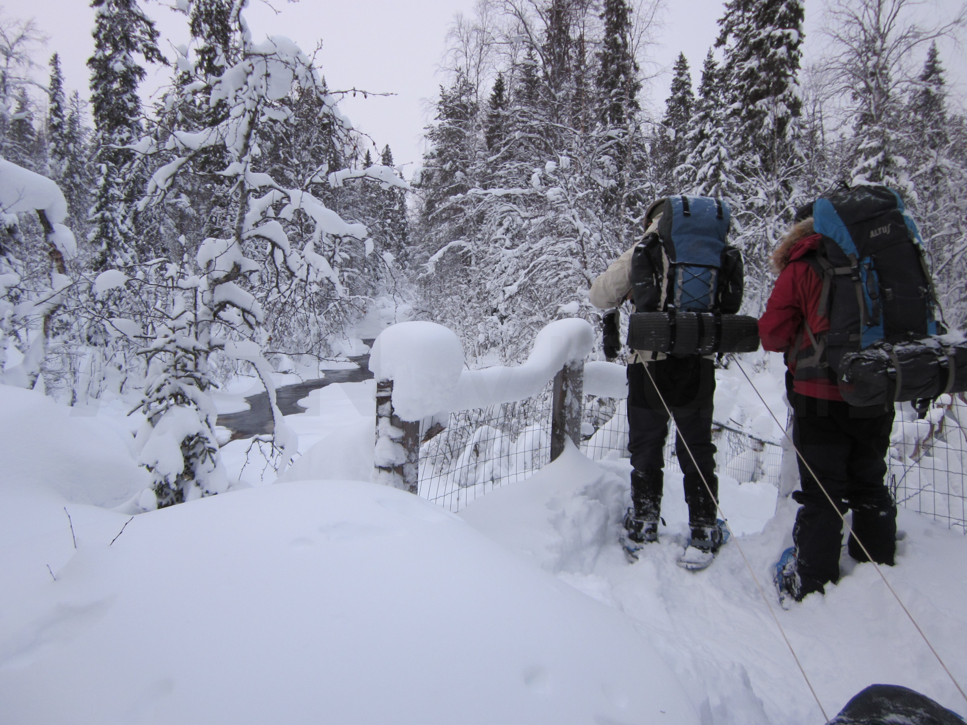 Me dispongo a hacer, a través de una agencia, la travesía con raquetas de nieve en el Parque Nacional de Oulanka, Finlandia. Este parque está situado justo al sur de Laponia y el círculo polar ártico. Ubicado en la frontera con Rusia, ofrece unos bosques y cañones espectaculares.
