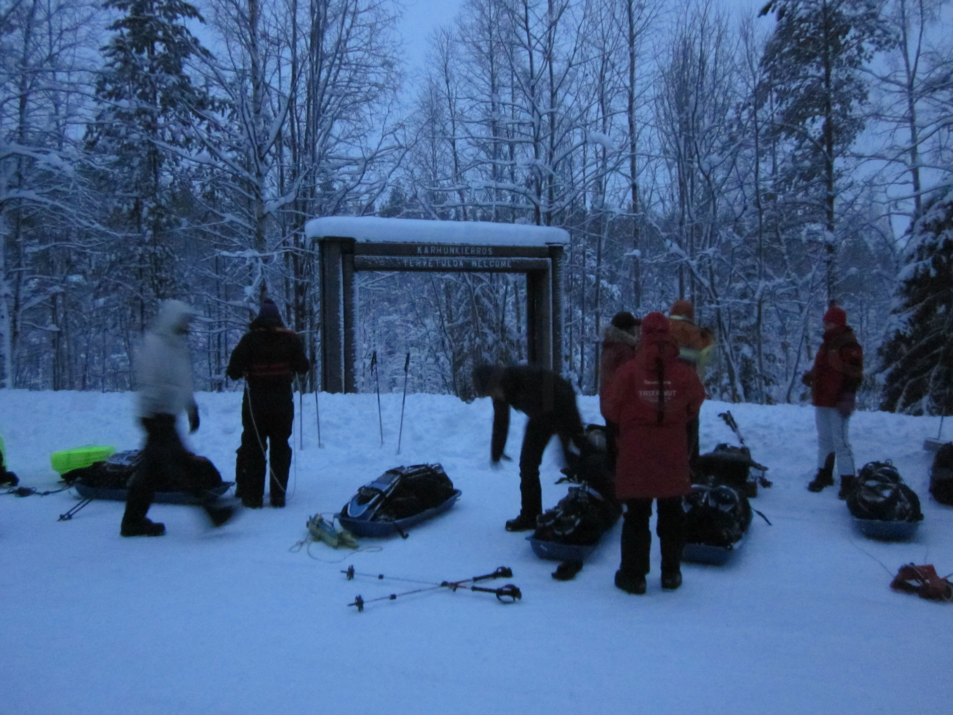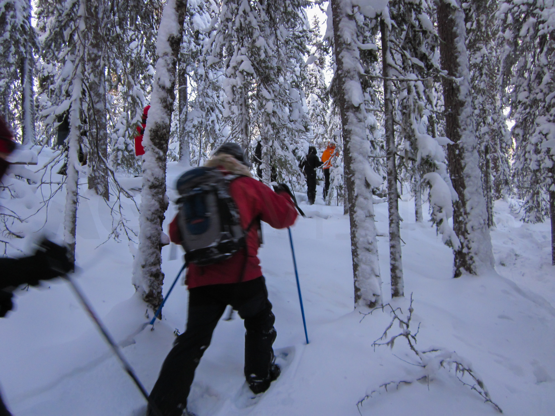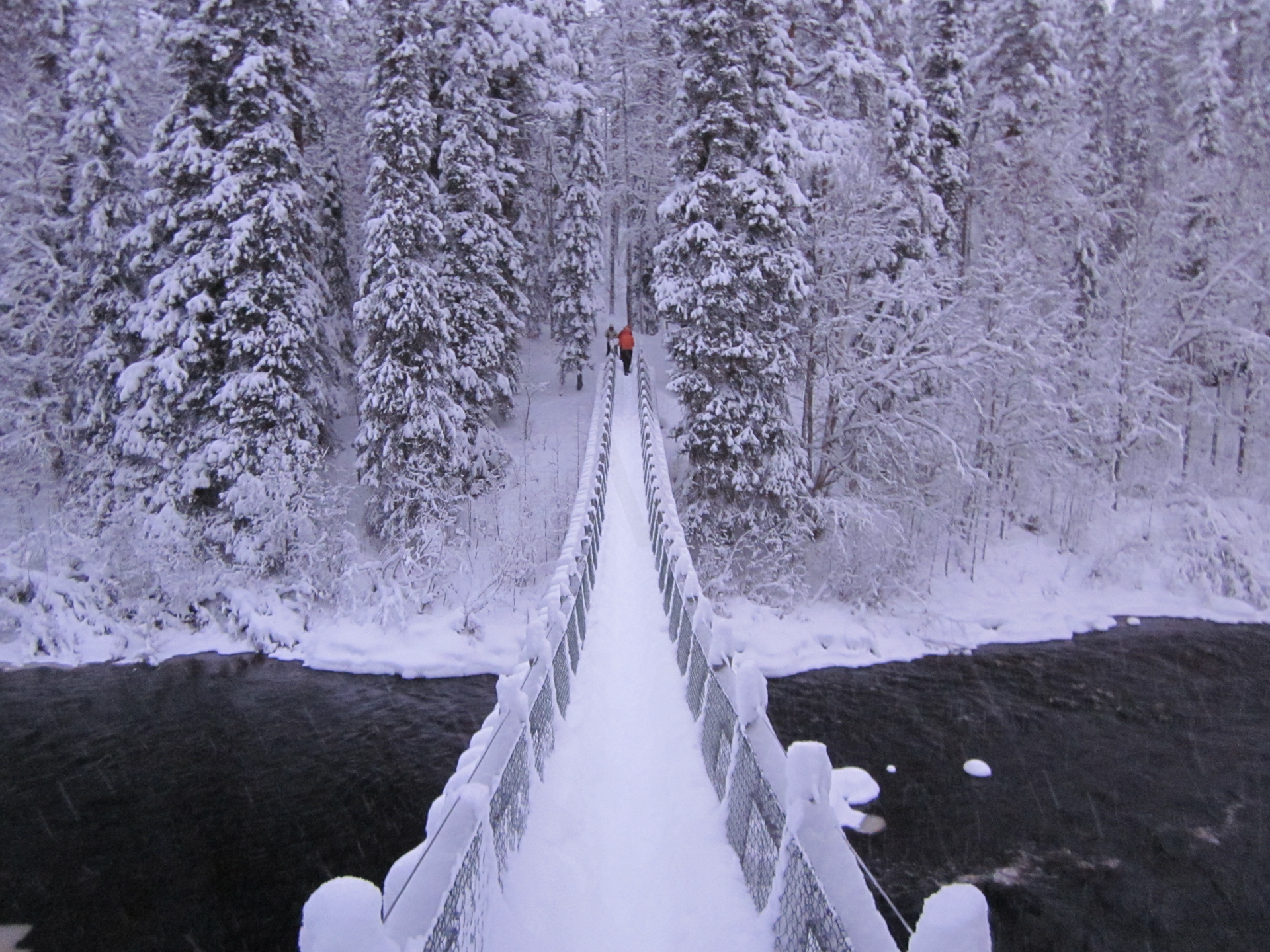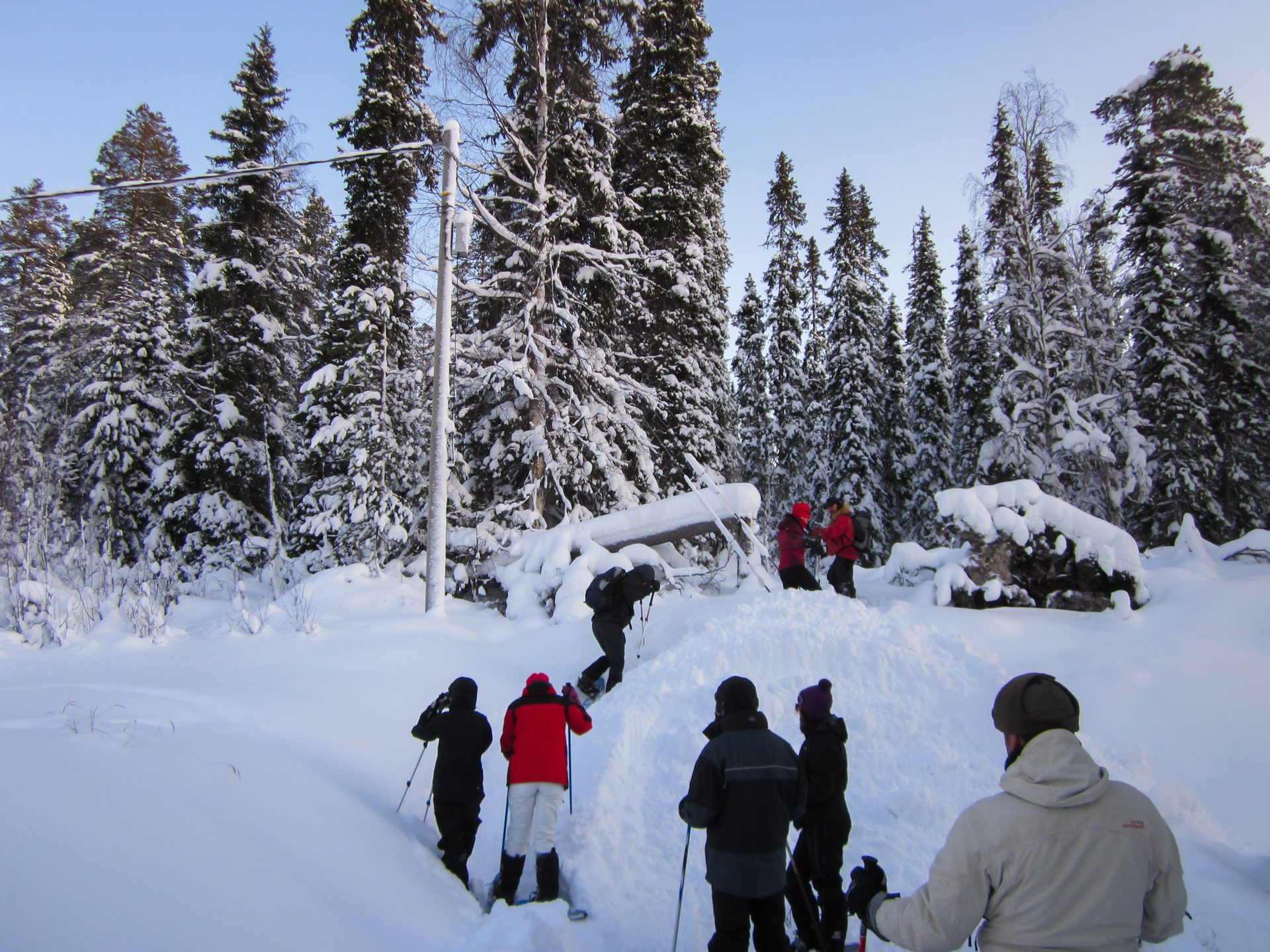 Me dispongo a hacer, a través de una agencia, la travesía con raquetas de nieve en el Parque Nacional de Oulanka, Finlandia. Este parque está situado justo al sur de Laponia y el círculo polar ártico. Ubicado en la frontera con Rusia, ofrece unos bosques y cañones espectaculares.