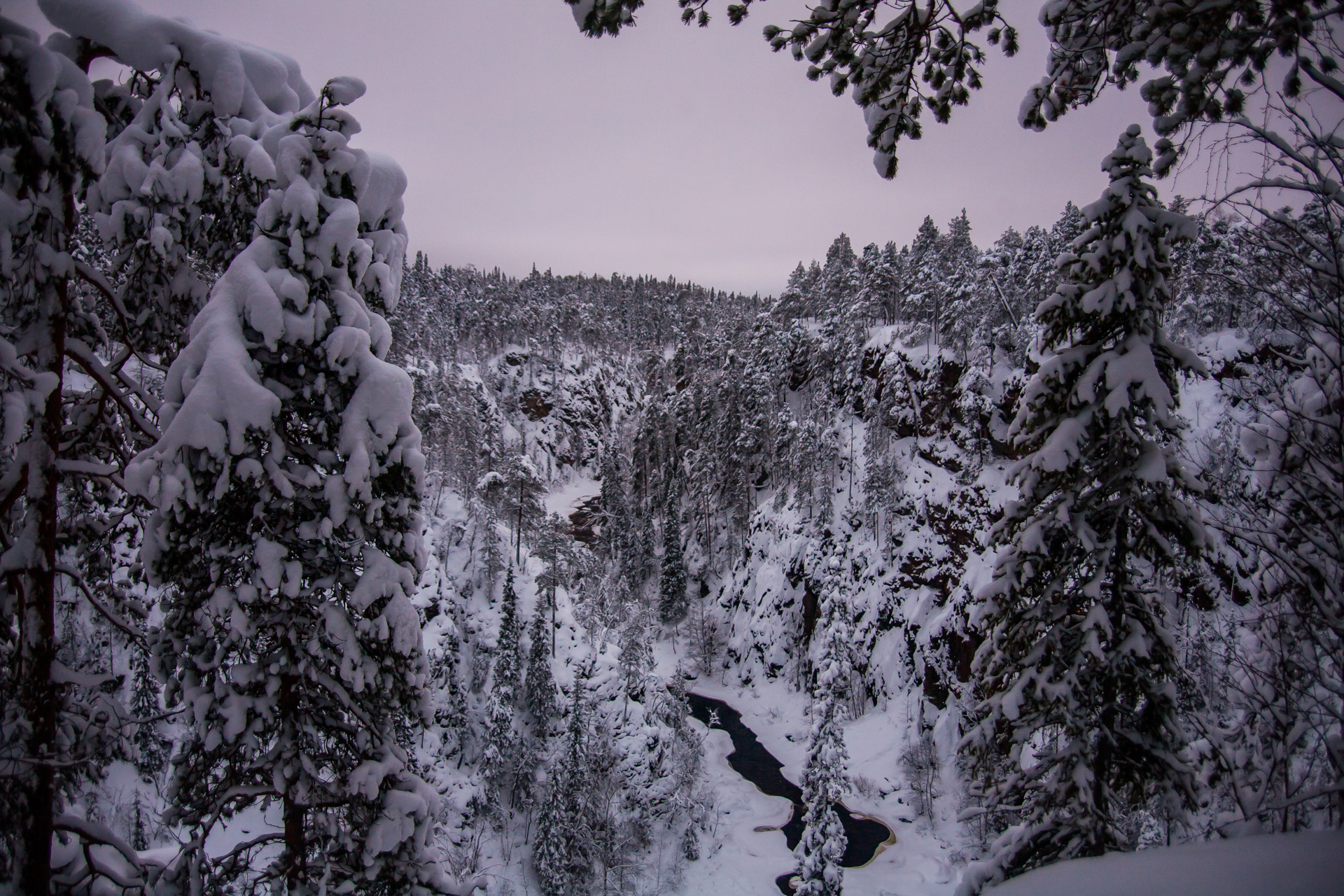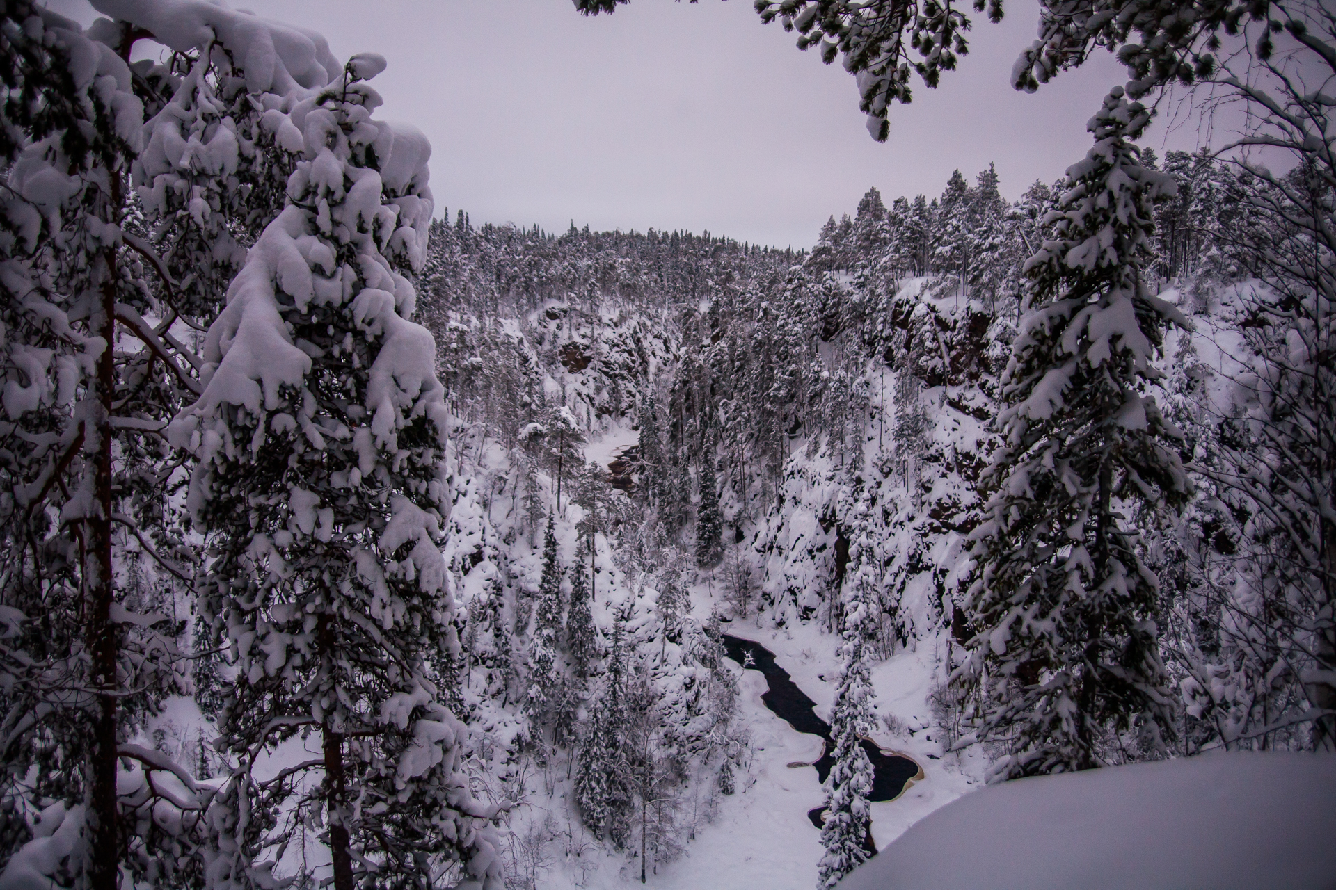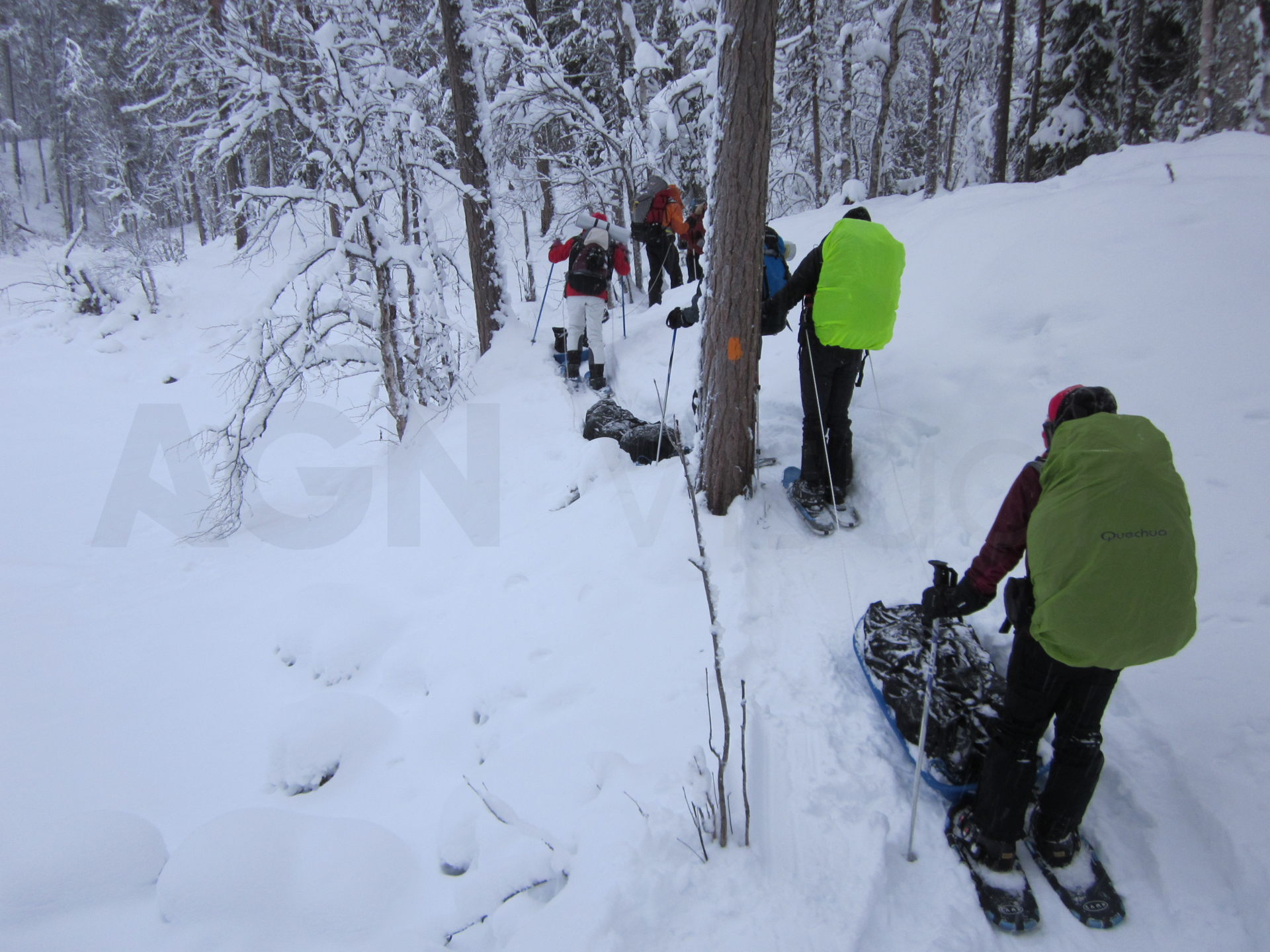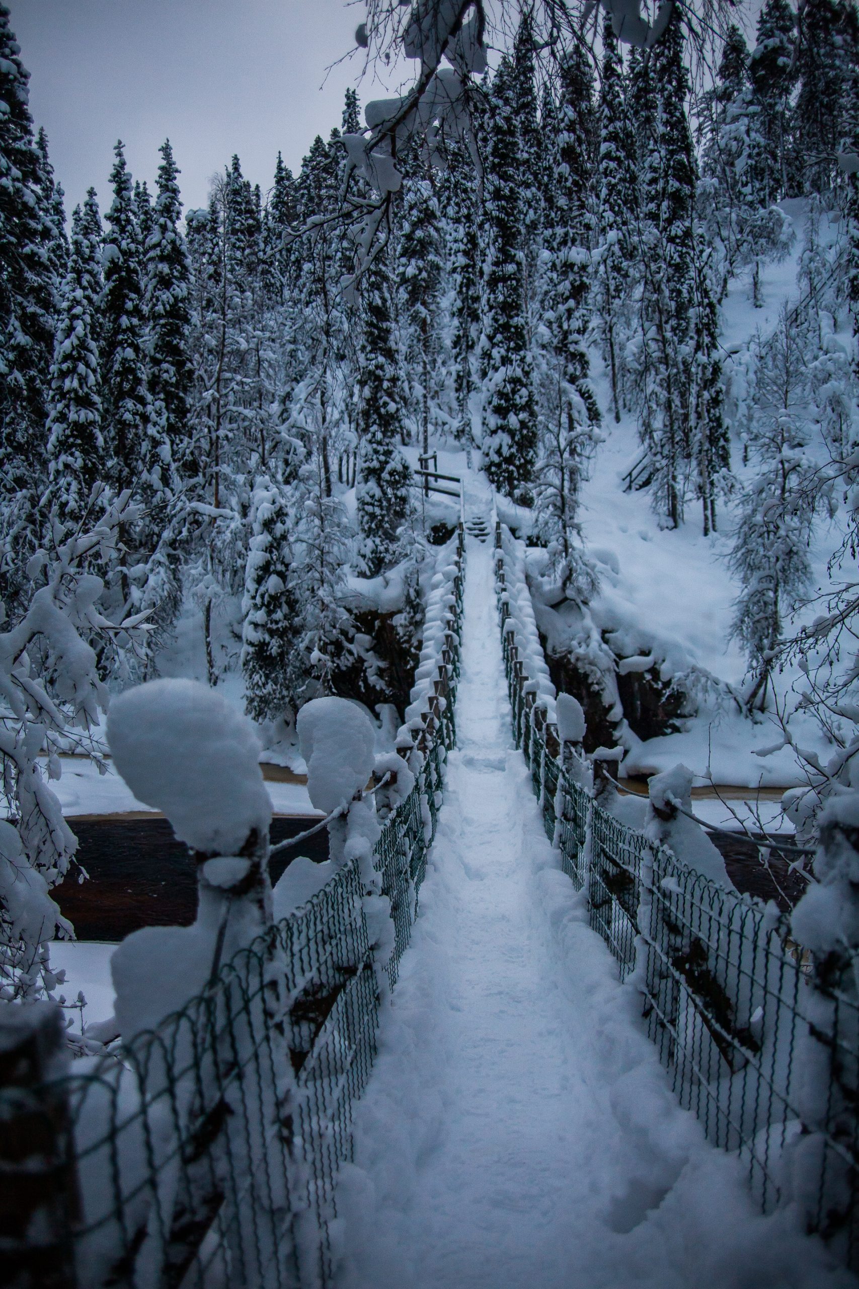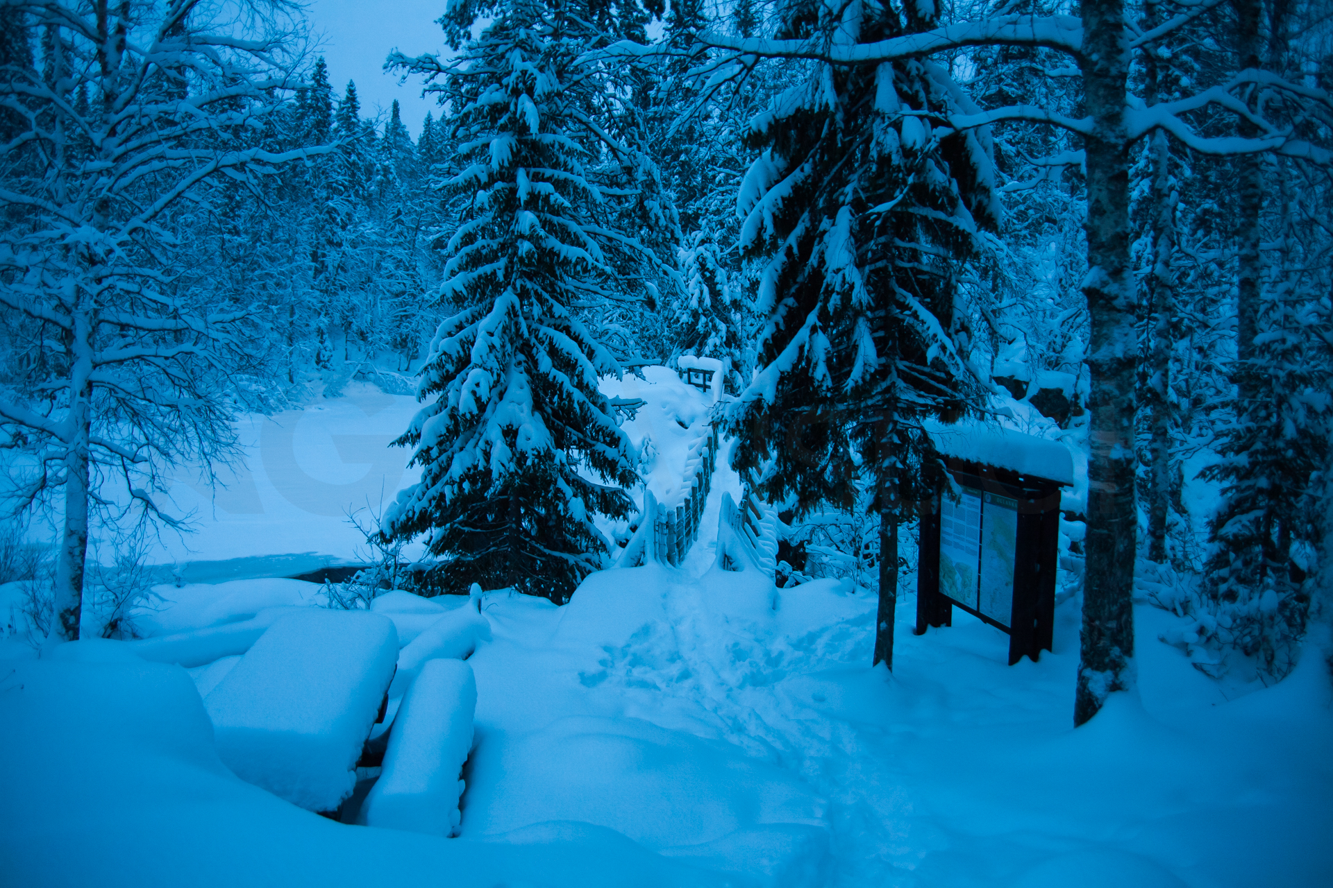 Me dispongo a hacer, a través de una agencia, la travesía con raquetas de nieve en el Parque Nacional de Oulanka, Finlandia. Este parque está situado justo al sur de Laponia y el círculo polar ártico. Ubicado en la frontera con Rusia, ofrece unos bosques y cañones espectaculares.