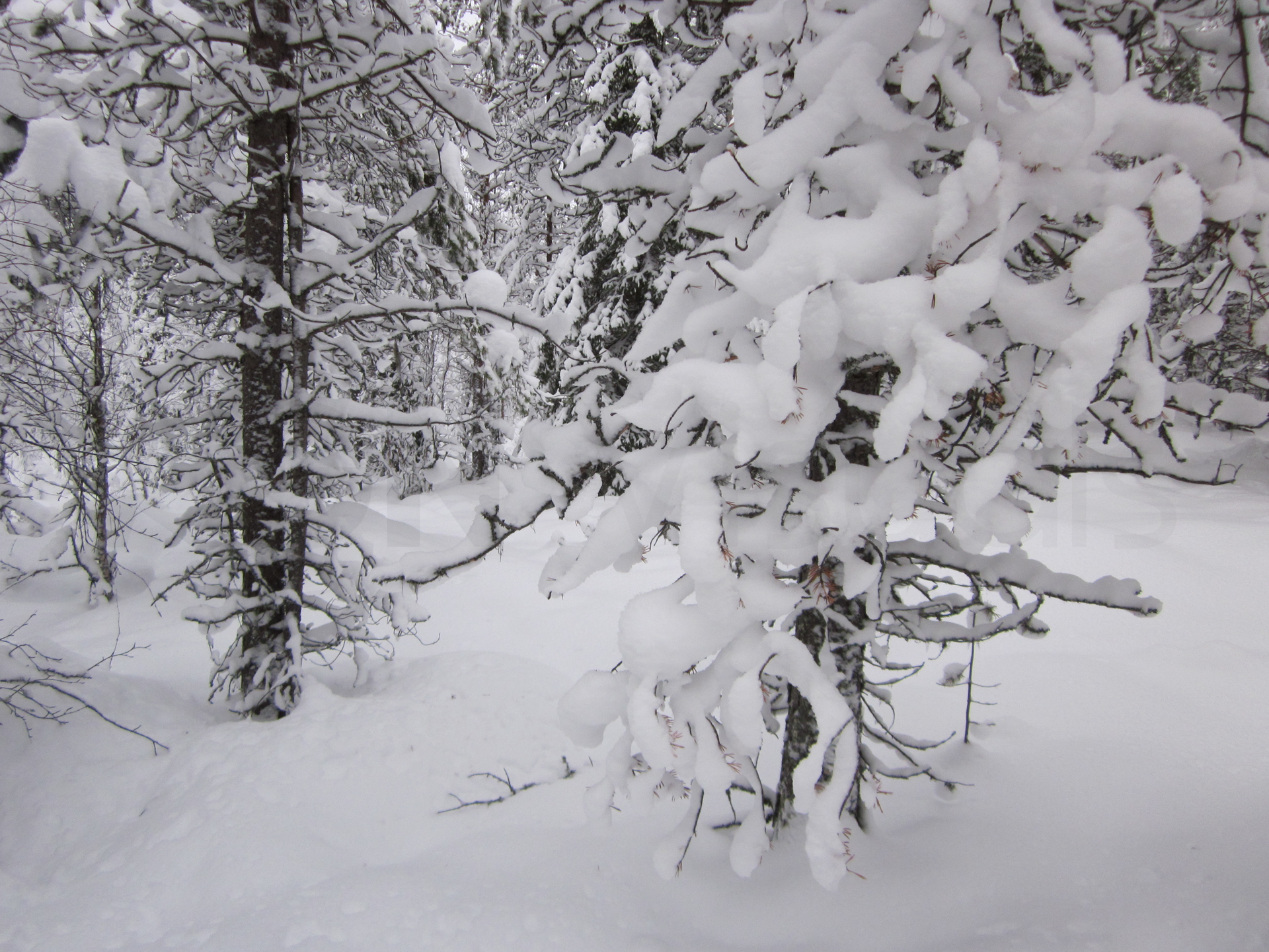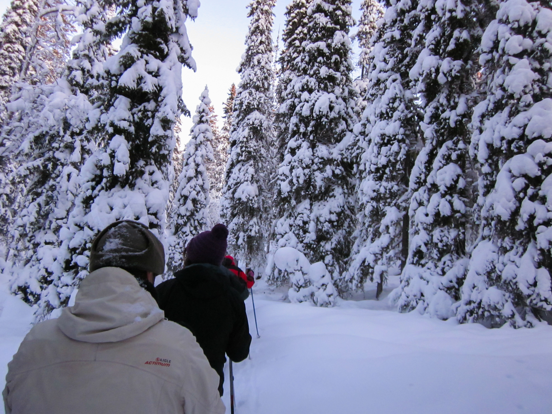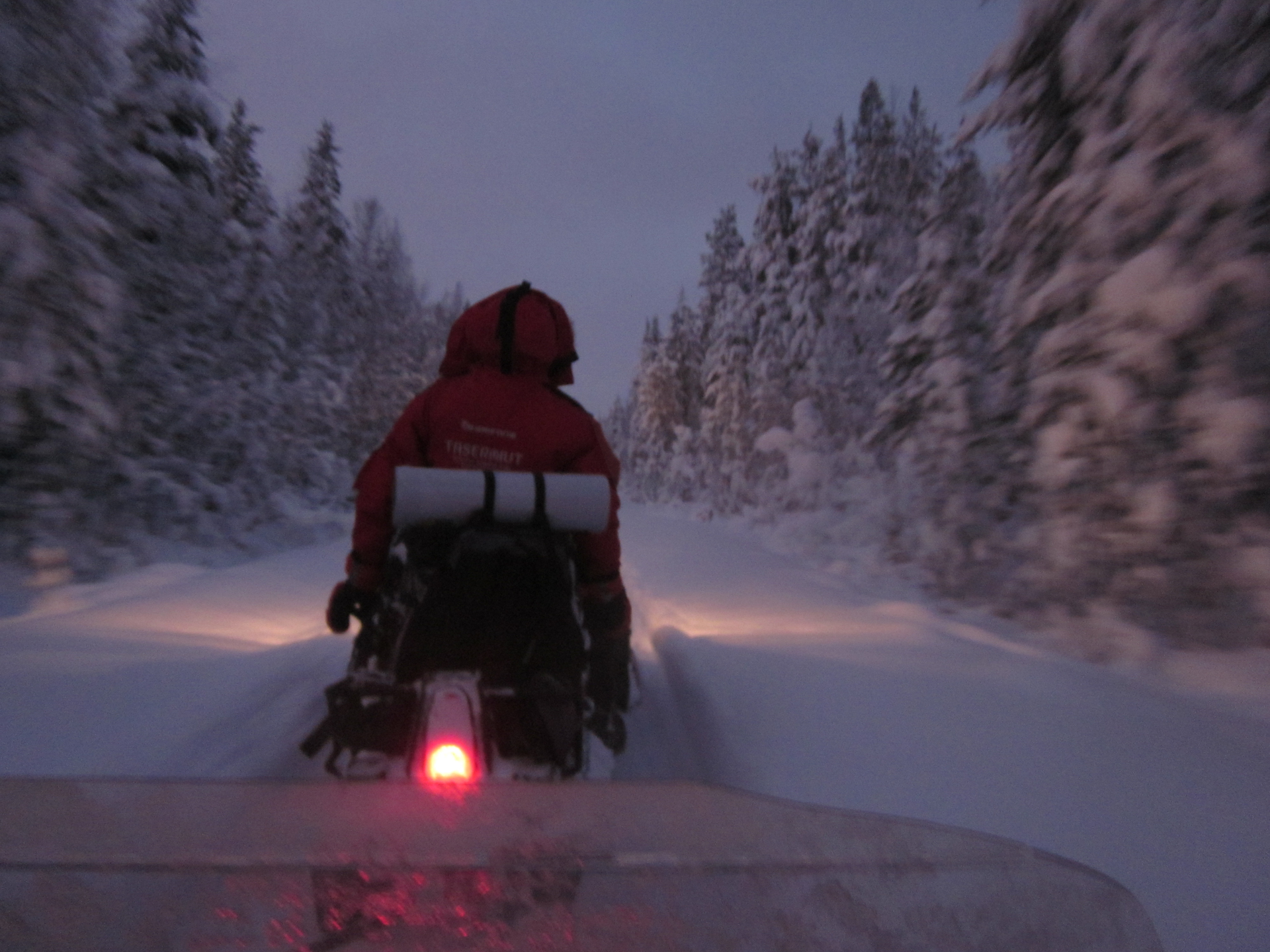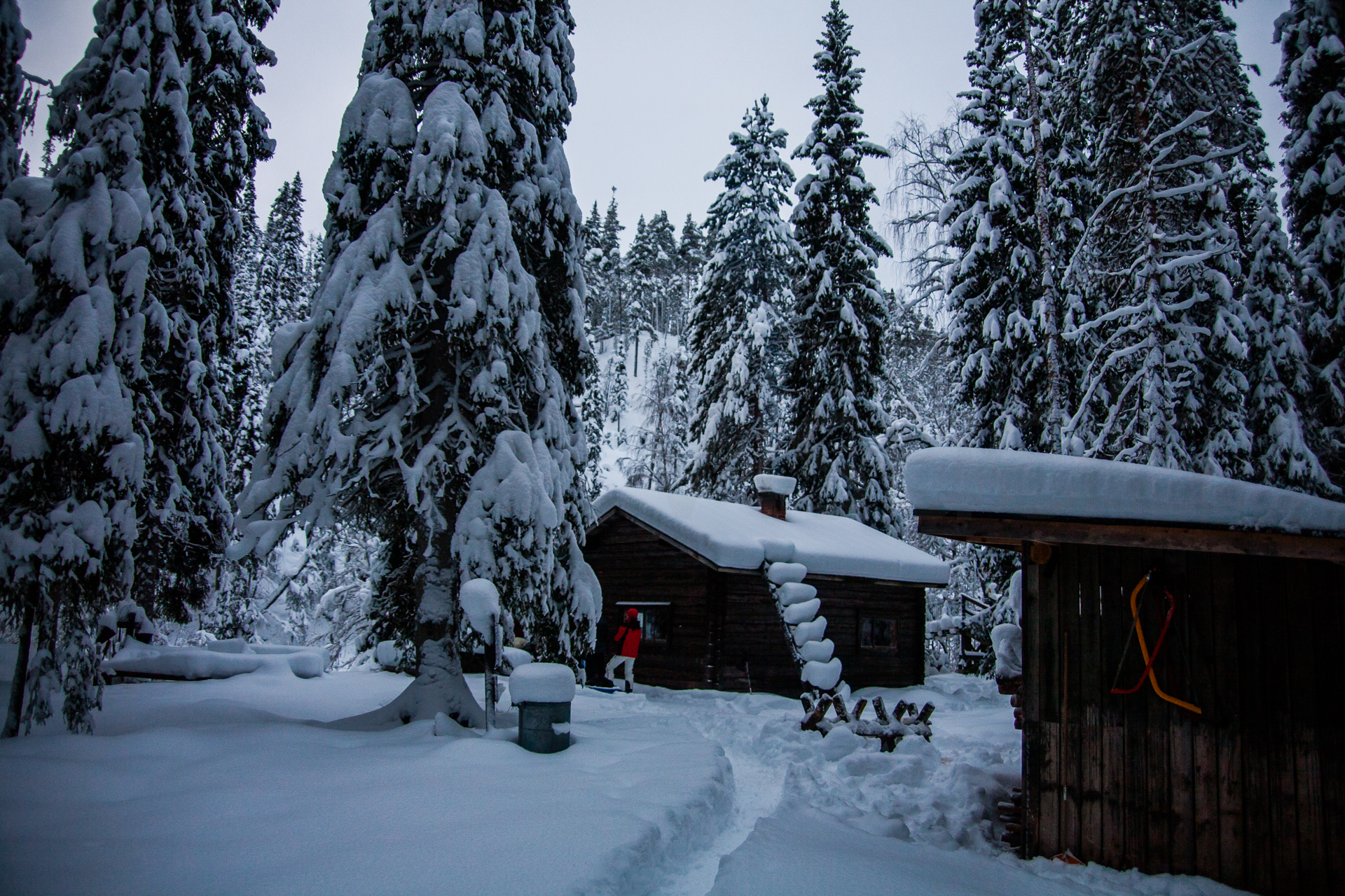 Iniciamos el viaje en un entorno realmente espectacular. Un bosque boreal cargado de nieve. Será una etapa corta pero aún y así llegamos de noche a la cabaña.