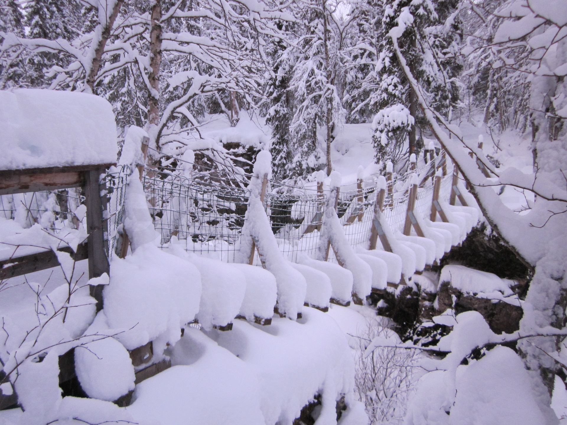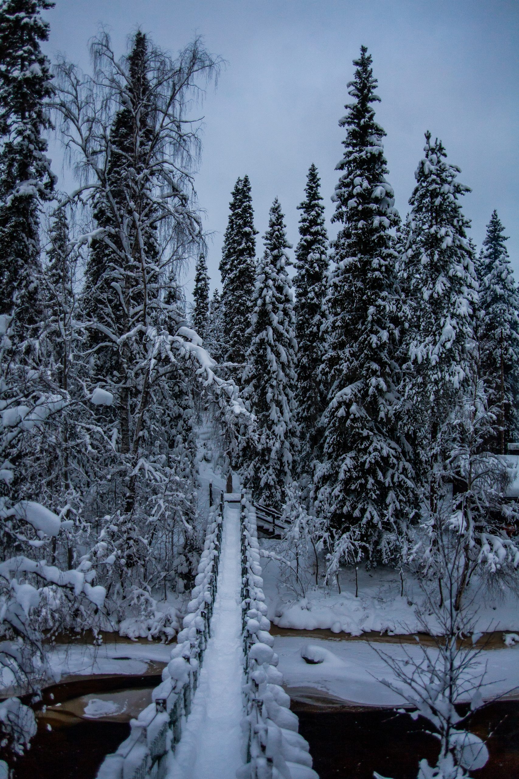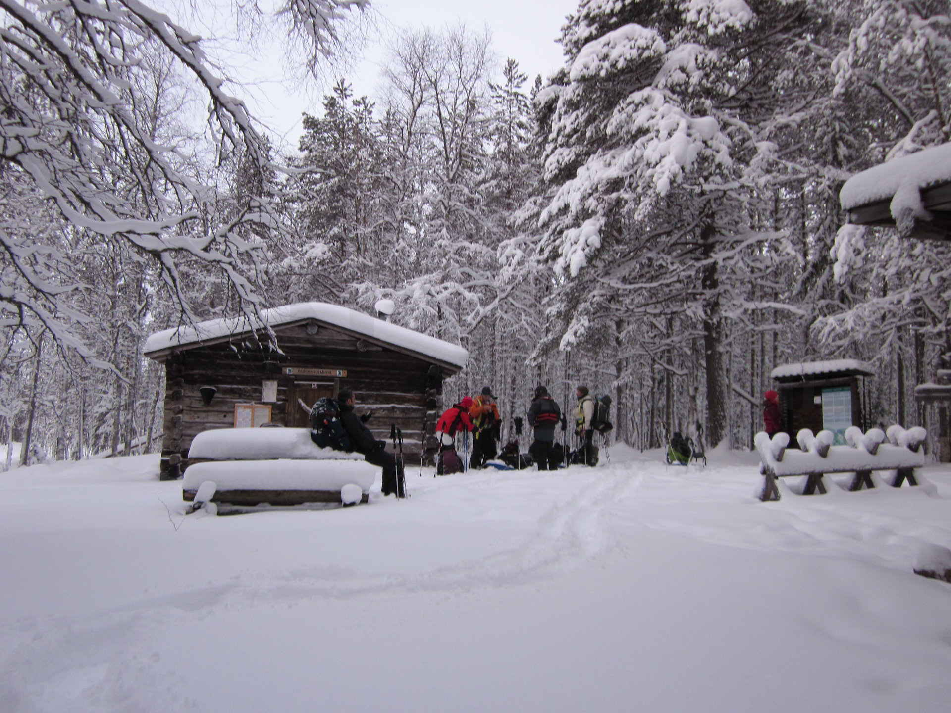 Madrugamos y empezamos la ruta. Hoy será un día espectacular. Cruzaremos muchos más puentes cargados de nieve y llegaremos a un refugio impresionante. Los refugios están situados en lugares realmente preciosos, entre pinos y abedules cargados de nieve. Era un paisaje de cuento.