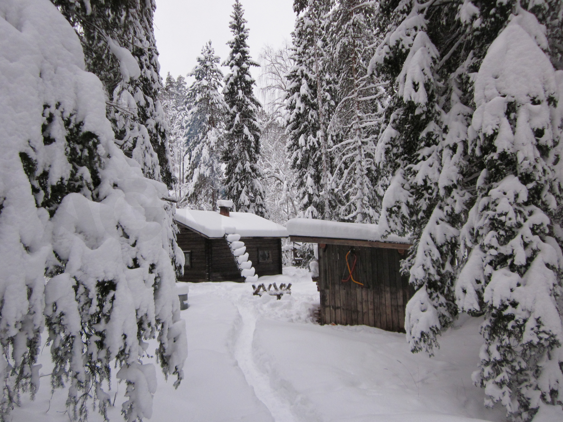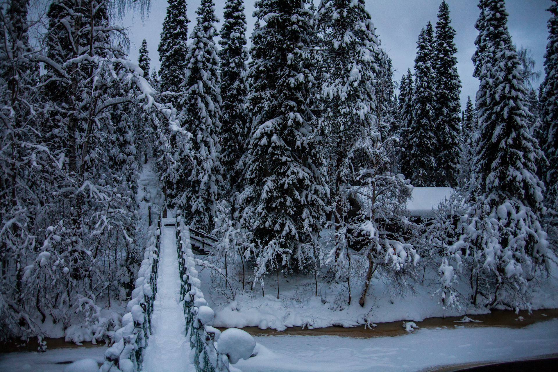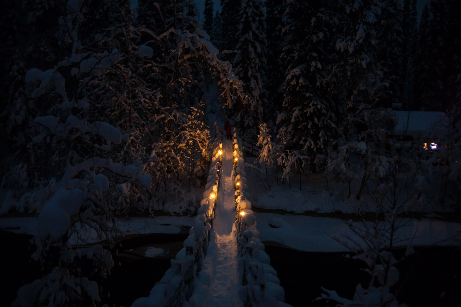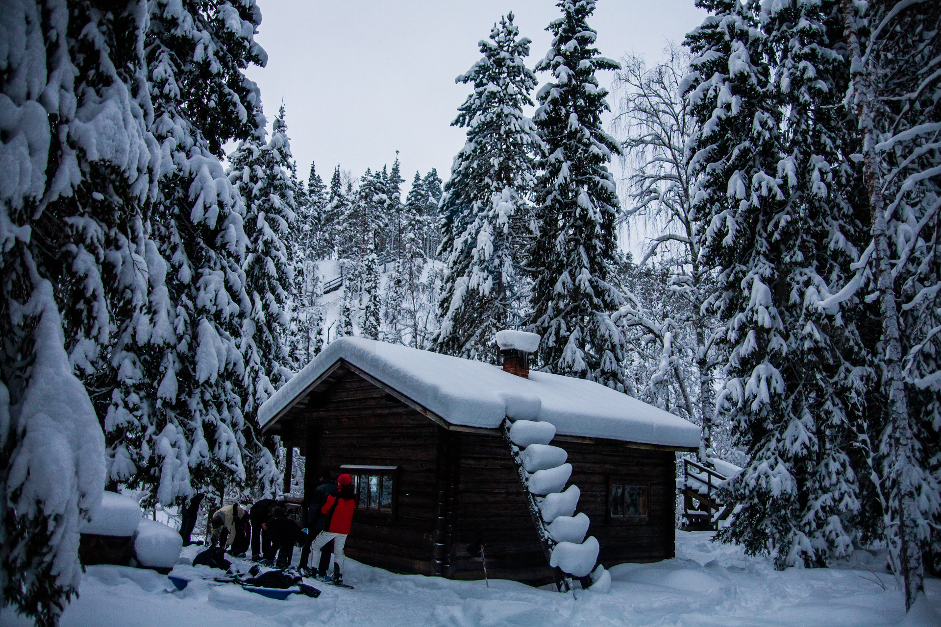 Madrugamos y empezamos la ruta. Hoy será un día espectacular. Cruzaremos muchos más puentes cargados de nieve y llegaremos a un refugio impresionante. Los refugios están situados en lugares realmente preciosos, entre pinos y abedules cargados de nieve. Era un paisaje de cuento.