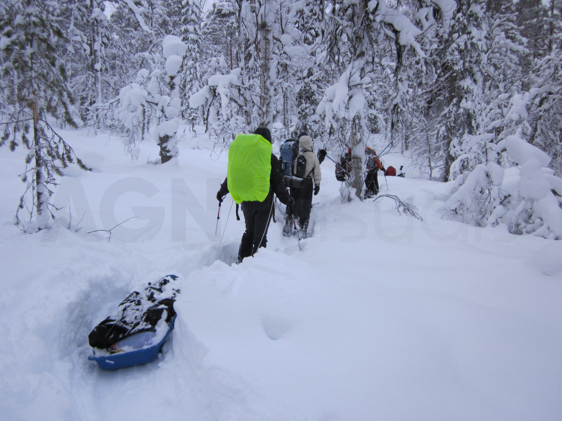 Será un viaje con 10 personas más el guía, y llevaremos una pulka (trineo de carga) cada dos personas.
