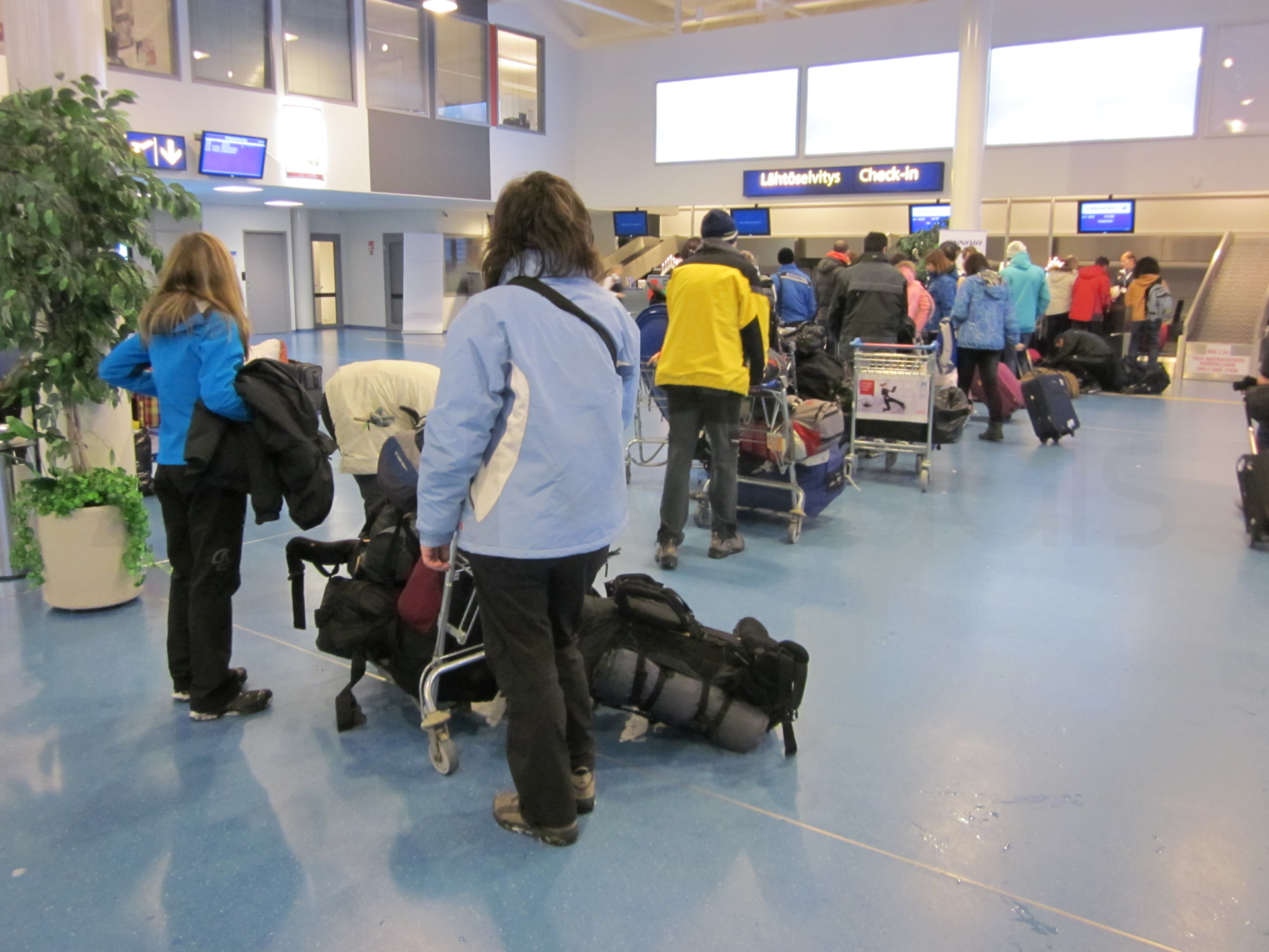 Una vez en el aeropuerto de Helsinki, comienzo a encontrarme mal. Son unas seis horas de escala que paso realmente mal. Dolor de cabeza, mareos, dolor de garganta y mucha secreción nasal; claramente estaba incubando una gripe o, al menos, un buen resfriado. Tomamos el avión de Helsinki a Rovaniemi y durante el vuelo, toda la secreción nasal iba de un lado a otro dentro de mis fosas nasales con la sensación de que estaba a punto de explotar. Las diferencias de presión del vuelo eran horribles para mi resfriado.