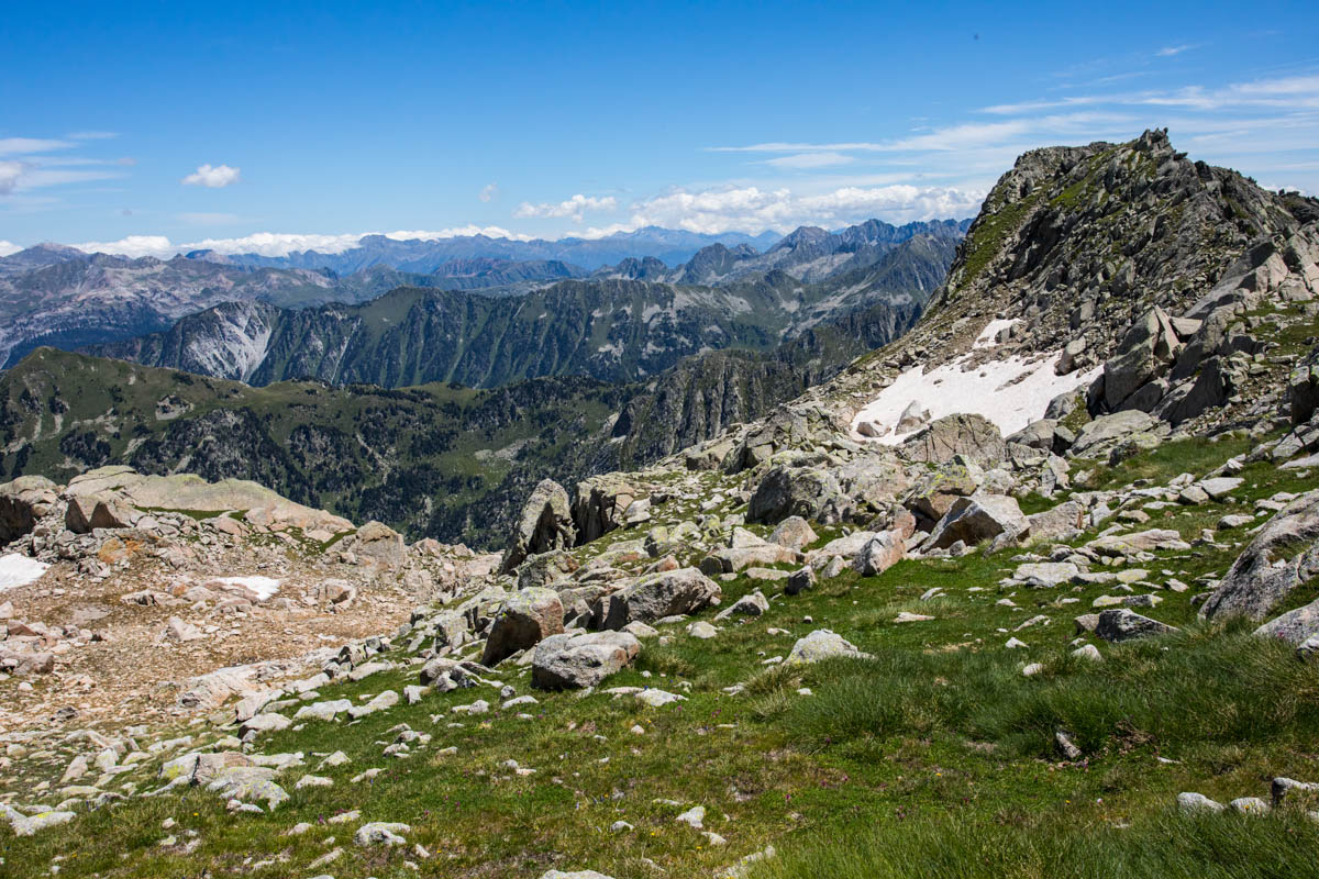 Los últimos metros eran exigentes, no peligrosos ni técnicos, pero con buena pendiente. Finalmente, llegamos a la cima del Pic de Ratera, completamente solos. ¿Y las vistas? Indescriptibles. Se veía todo el Pirineo, el Parque Nacional en toda su magnitud. Uno de esos momentos en los que ni una foto puede hacerle justicia. Lo tienes que vivir.