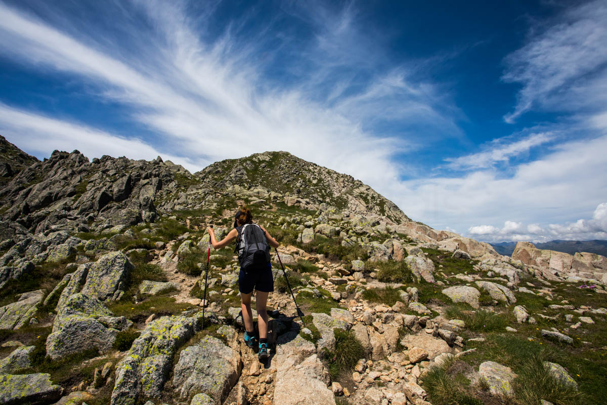 En uno de esos collados, Raquel se quedó sin fuerzas. Me dijo: «No puedo más, me quedo aquí a comer algo». Le dije que no pasaba nada, que descansaríamos y luego decidiríamos. Tras reponer un poco de energía, se animó a seguir, y finalmente hicimos cima.